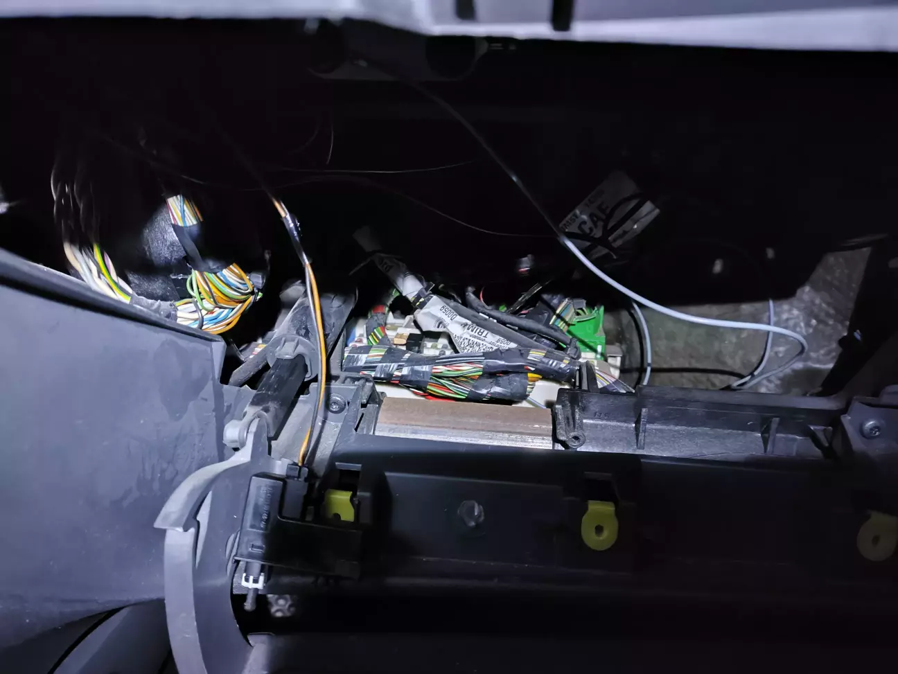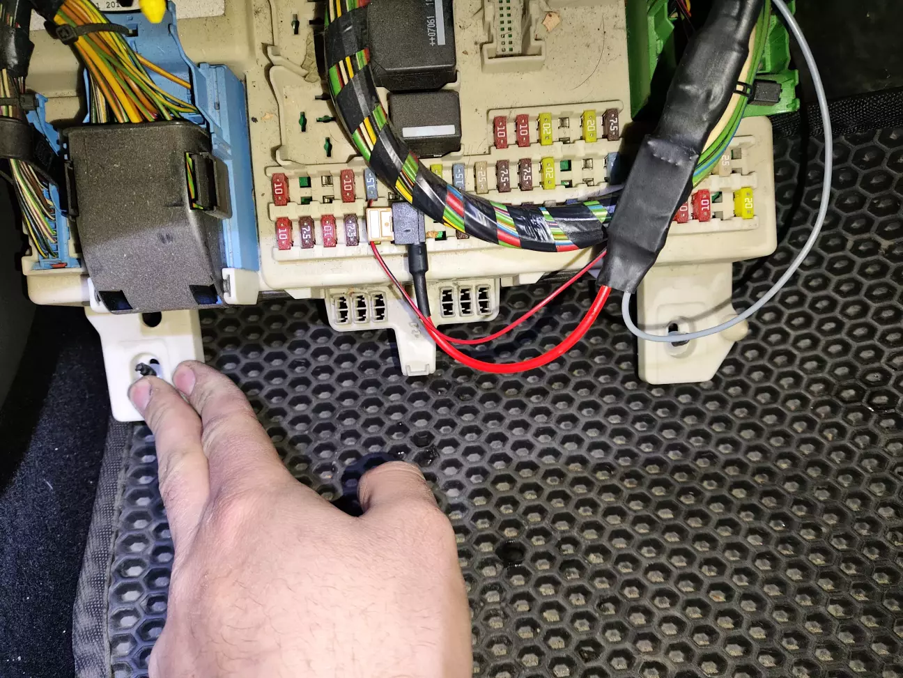 Ну і коли забрав почав становку. ВИтягнув бардачок і в модулі GEM він жен блок запобіжників занойшов вільну колодку в якій з'являється живлення при ввімкненні запалення. Прокинув юсб провід по правій стойці і під потолочиною до дзеркала.