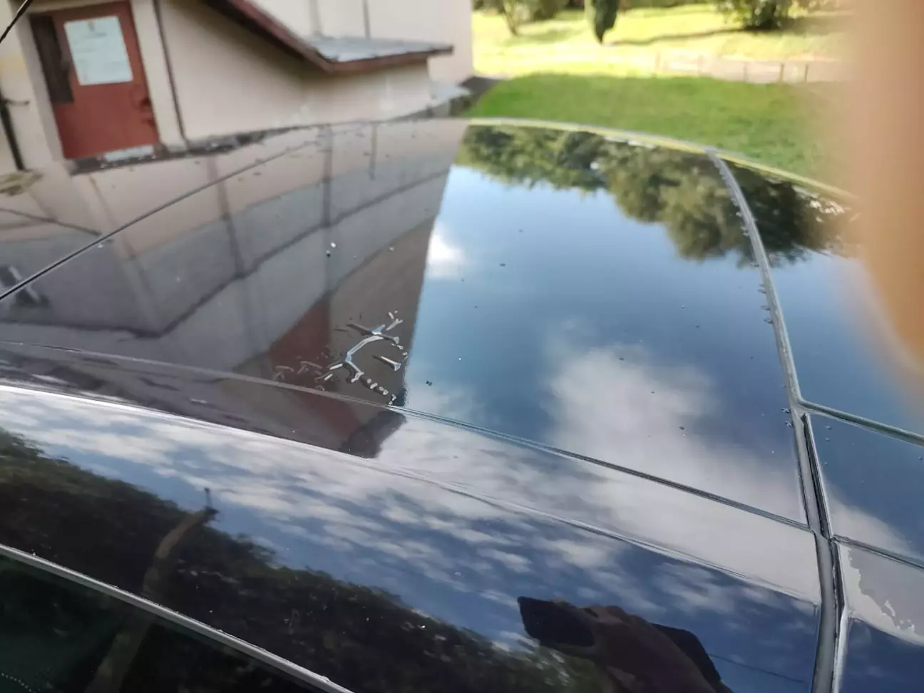 Приємно здивував підхід до роботи вже після виконання. Через кілька днів після поклейки автомобіль потрапив під сильний дощ, і в деяких місцях плівка трохи вздулась. Варто зазначити, що попередньо мене попереджали: кілька днів після поклейки дах небажано мочити або мити.