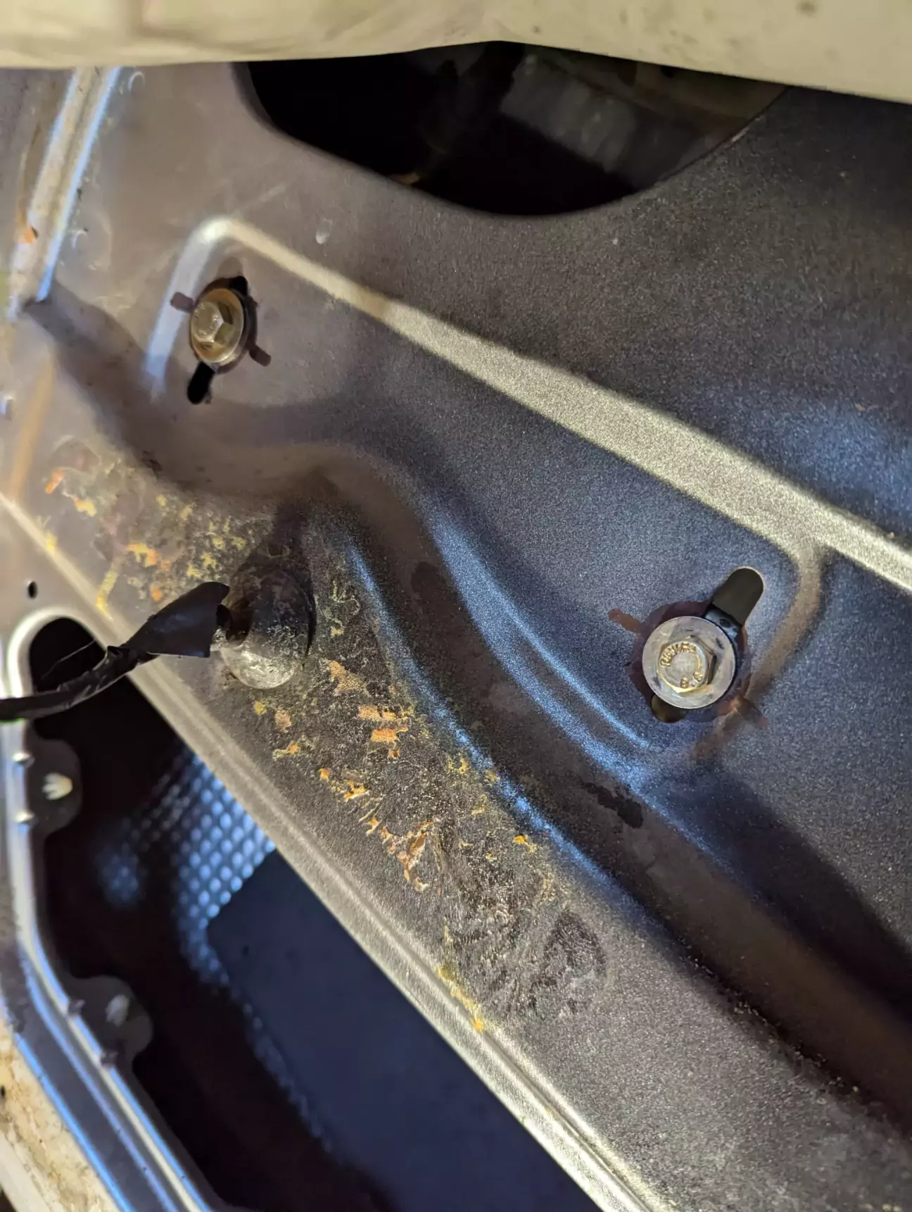 І так робота яку я відкладав по браку часу ще з минулого року. На поганій дорозі вікно у відкритому положенні могло підстукувати і при підійманні поверталось вниз. Почитав в інтернеті що можуть бути вироблені напрямні склопідіймача. Замовив нові вони не дорогі весь комплект +-250грн. У вільний від роботи час приступив до розбору. Зняв дверну обшивку, опустив вікно на 3/4 висверлив 4 заклепки які тримають механіз та викрутив два болта планки (обов'язково позначити собі як вони закручені щоб не було перекосу вікна)
