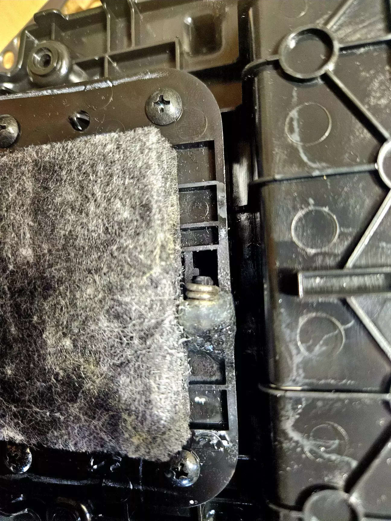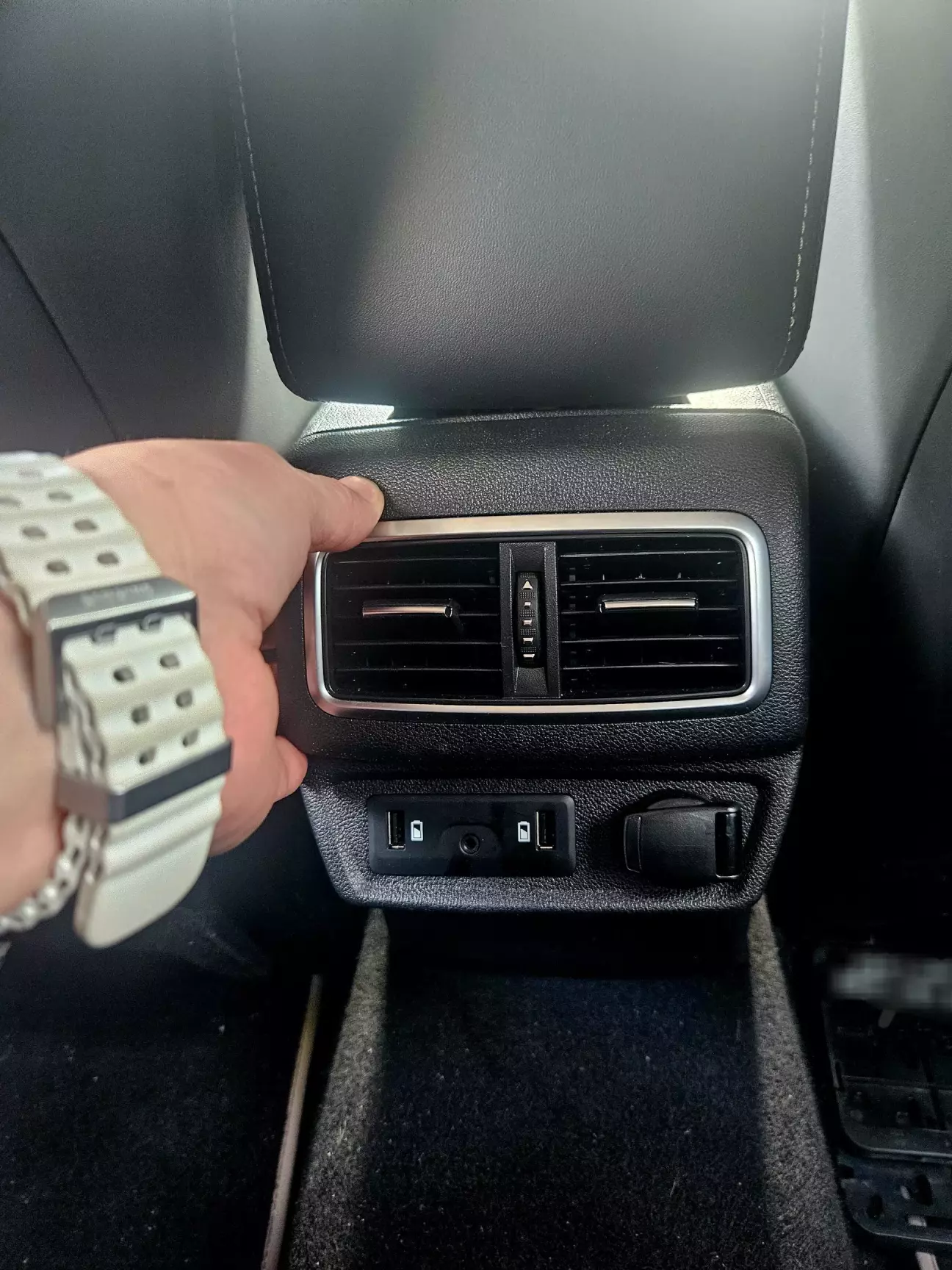 1. Спочатку потрібно від'єднати дефлектор обдуву задніх сидінь, який ховає саморізи. Робиться це дуже просто - береш і тягнеш кришку на себе. Знімається майже без зусиль.