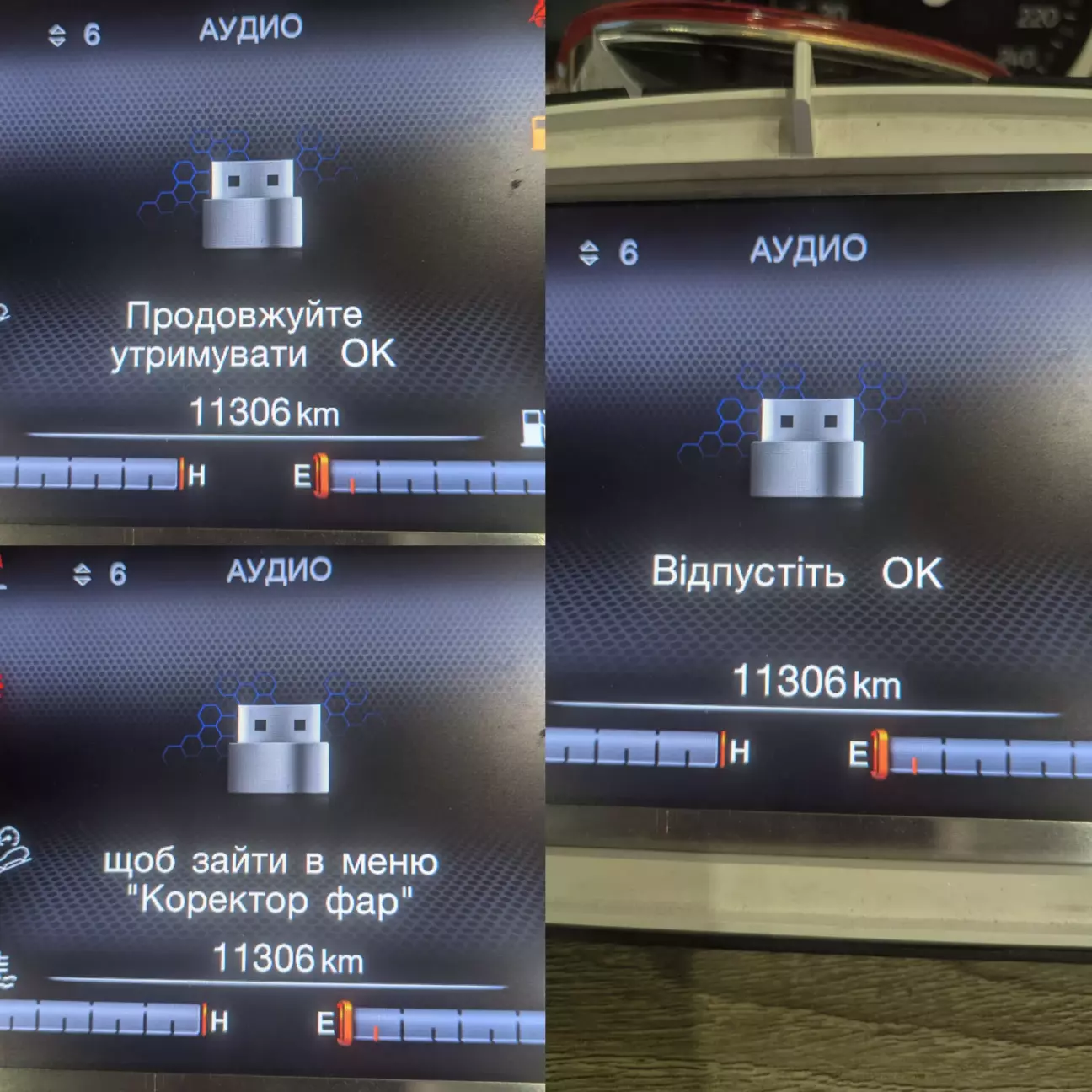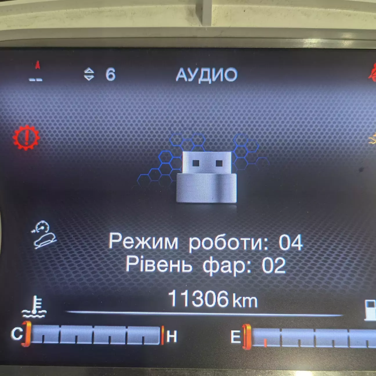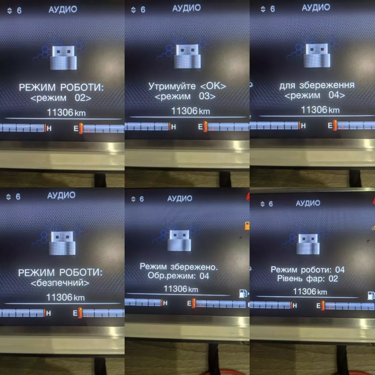 В версії 1.2 додатково додав блимання індикатору габаритів /ближнього (тільки під час перебування в усіх рівнях меню) для того, щоб було розуміння того, що Ваші маніпуляції призвели до того, що змогли зайти в меню. Якщо Ви це зробили випадково - перейдіть в закладку "Аудіо", подивіться/перевірте все.