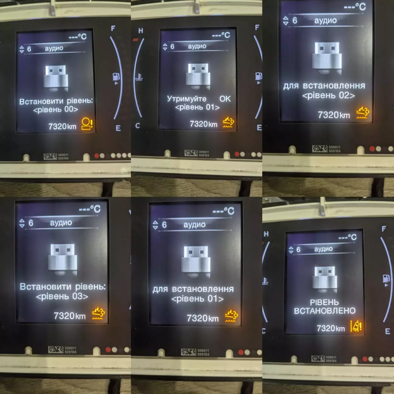 В меню коректор фар рівень буде реально змінюватися відповідно до вибраного на екрані рівня.