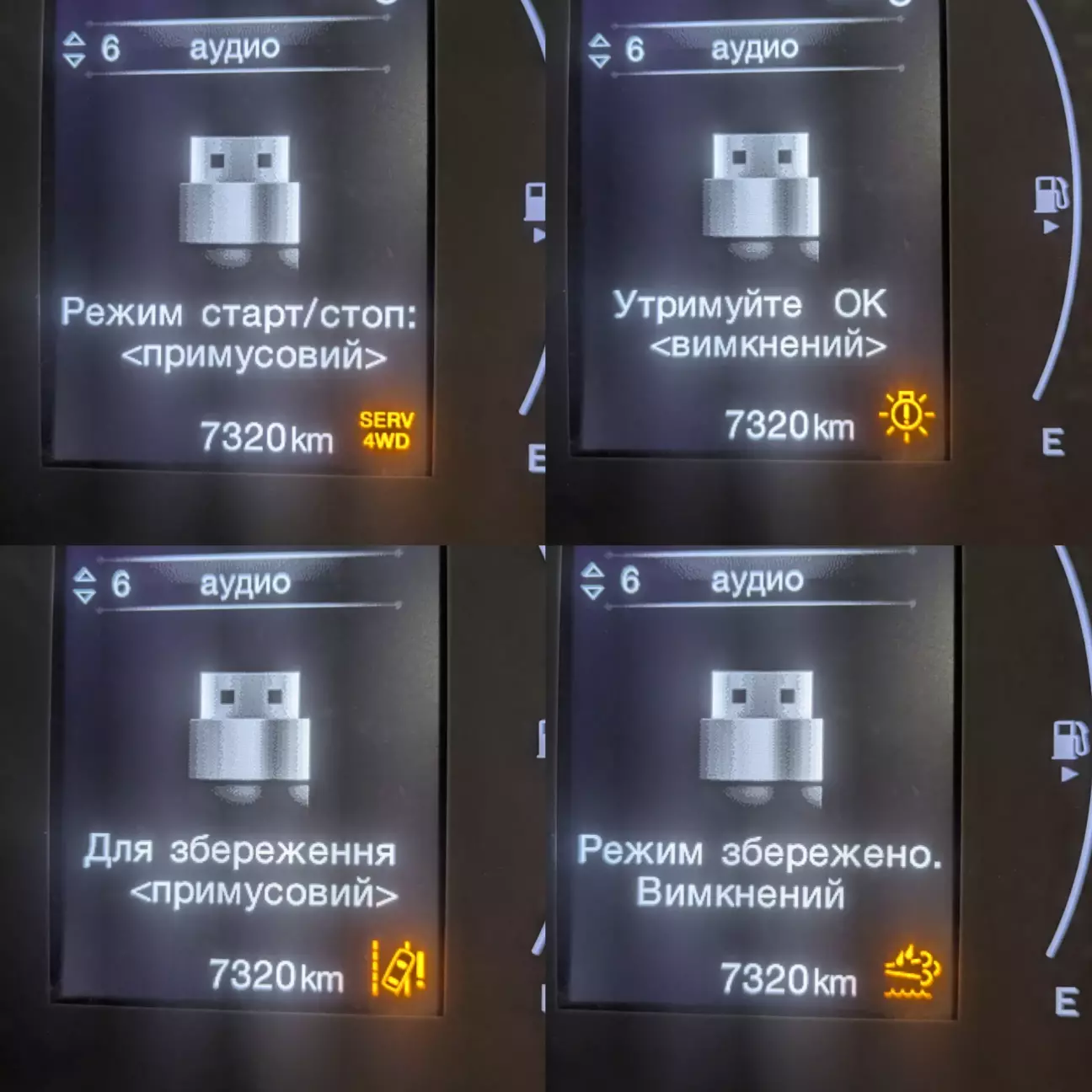 Старт-стоп - тут можна вибрати варіант вимикання системи старт-стоп. Наразі, доступні "примусовий" (вимикає постійно) та "вимкнений" (не вимикає взагалі). Пізніше буде доступний "автоматичний" ("розумний", як вже описував вище)