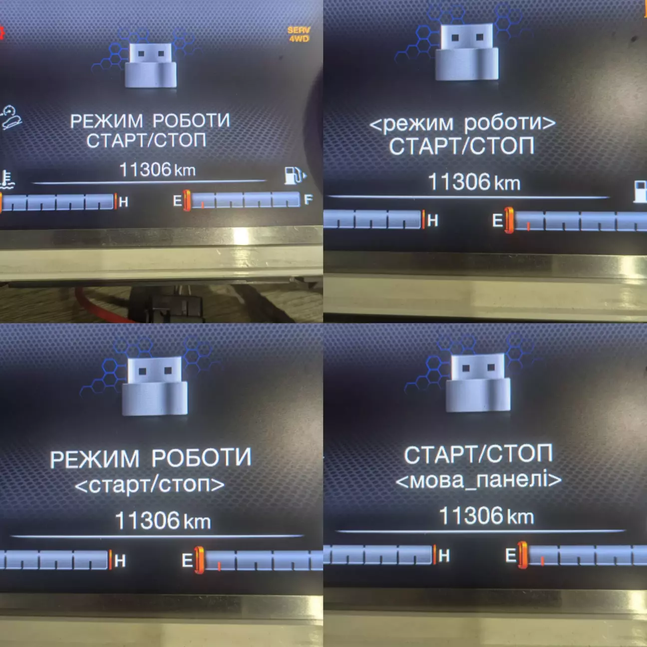 Режим роботи - тут можна вибрати потрібний режим роботи (1-4 та "безпечний"). Безпечний зберігається як поточний режим в безпечній версій (1 ->1S). Він потрібний для того, щоб мінімізувати вплив контролеру на панель приладів (у разі якихось сильних глюків)
