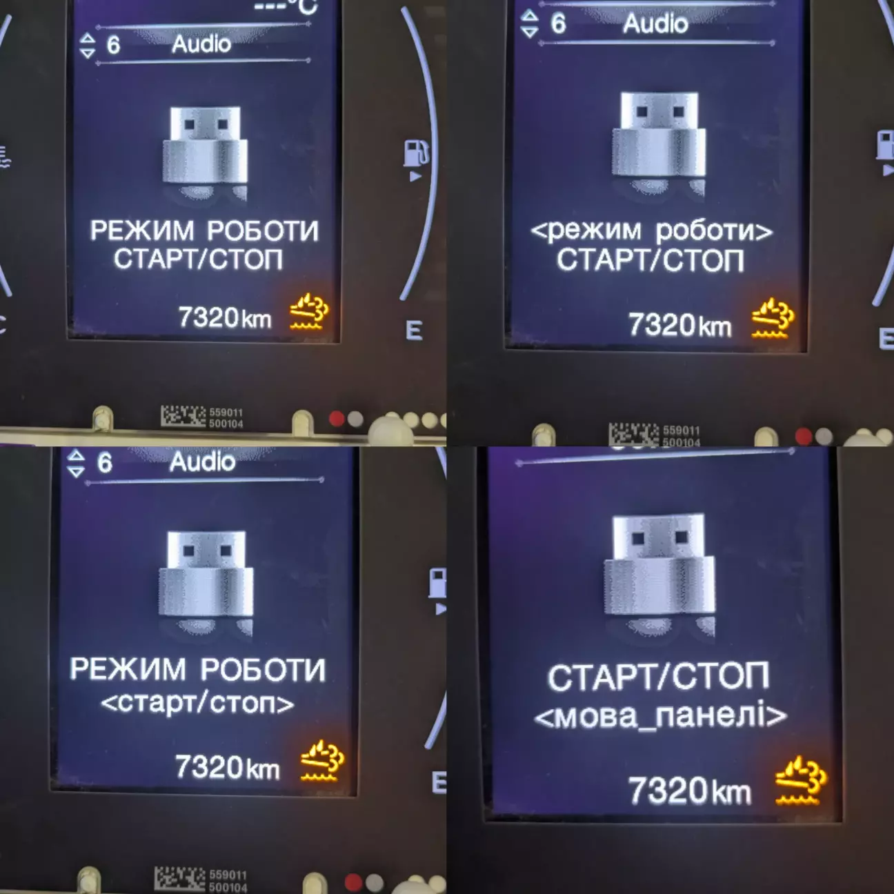 Всі зміни налаштувань відбуваються через меню в панелі приладів. Керування при цьому відбувається кнопками на кермі. Навігація в ньому - ВЛІВО/ВПРАВО, вхід в вибраний пункт/збереження - утримання OK).