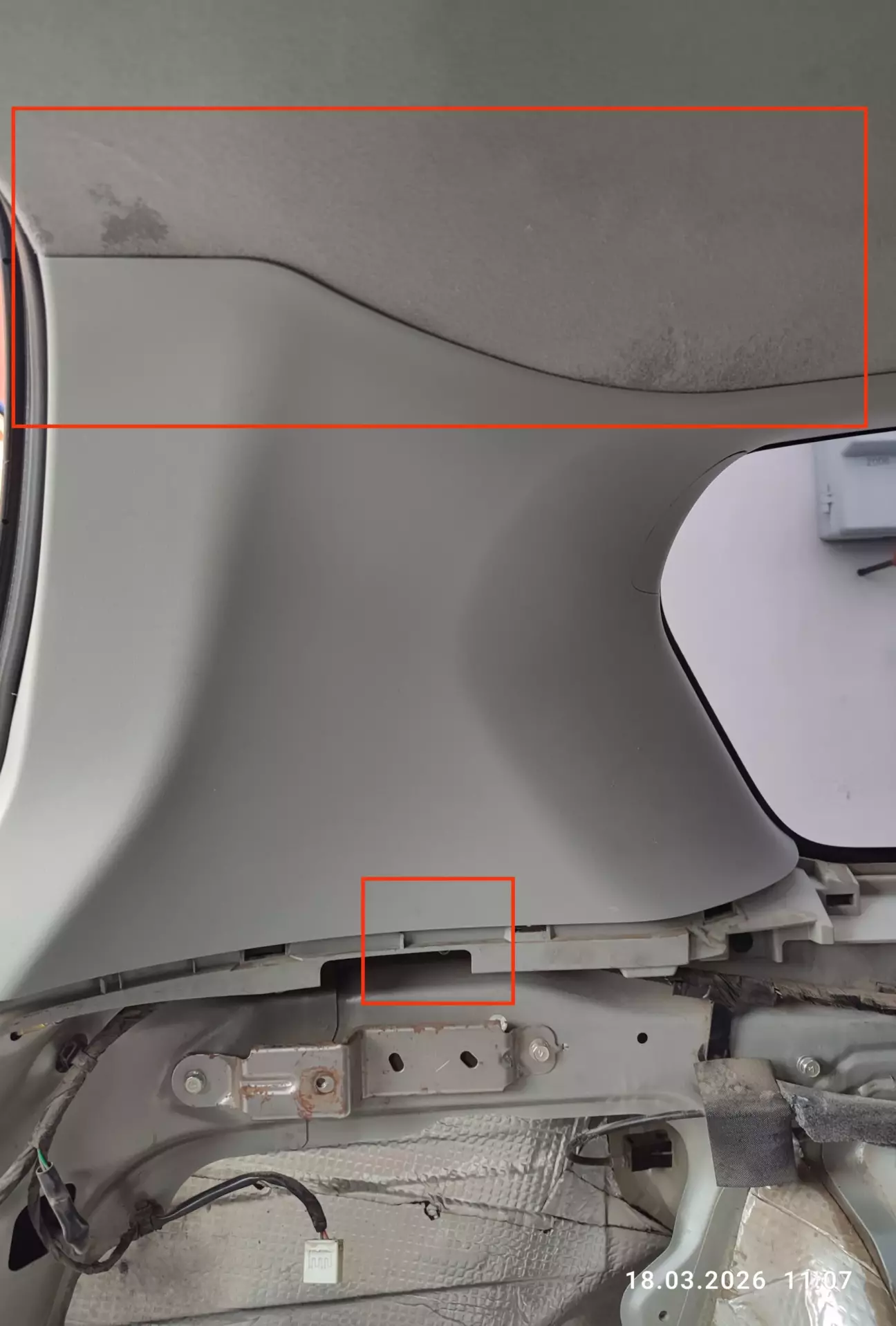 А саме у верхній кутовій лівій частині обшивки прояви мокроти, та малі підтікання води через верхню сіру бокову обшивку капало на метал кузова в багажнику. Хоча зимою при розтаванні снігу також зустрічав що з ліва в тех., ніші незначні підтікання води, вирішив що це від конденсату так як нижче під тех., нішою розташований вентиляційних отвір, не придав до цього велику увагу, а мокріння обшивці даху навіть не звертав уваги.