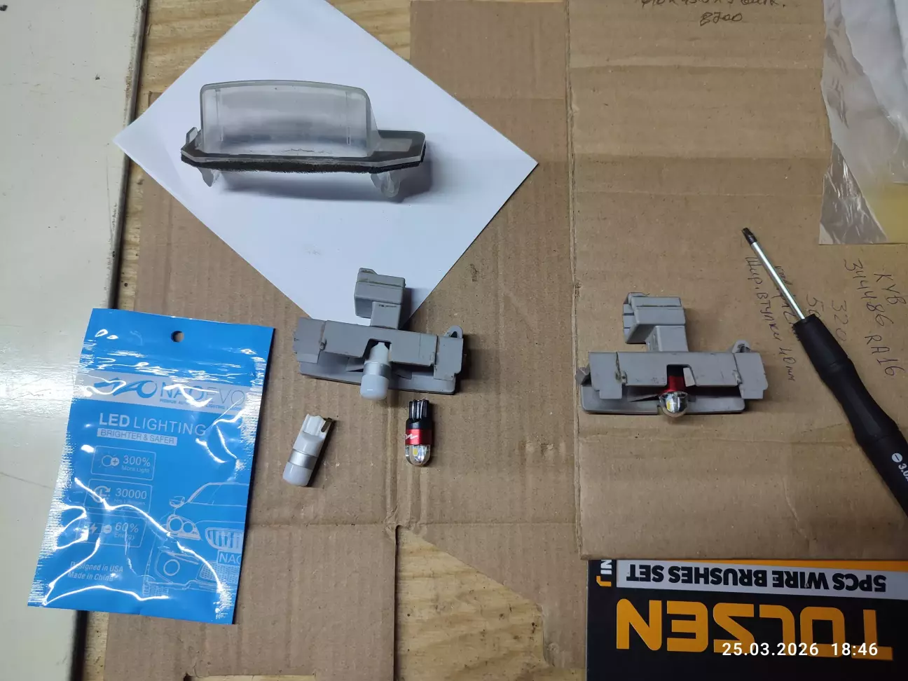 В кінці замінив пару LED лампочок підсвідки держ., номера, (ліва миготіла) а також почистив помив плафон та цоколь.