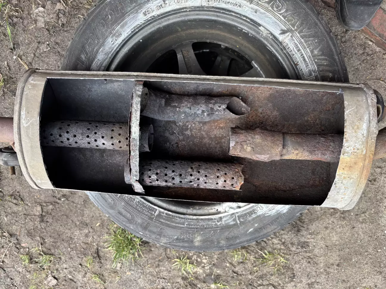 Вирізав, всередині вичистив весь шлак. Спочатку хотів варити в стик, але зрозумів що метал ну дуже тонкий. Приварив в нахльост.