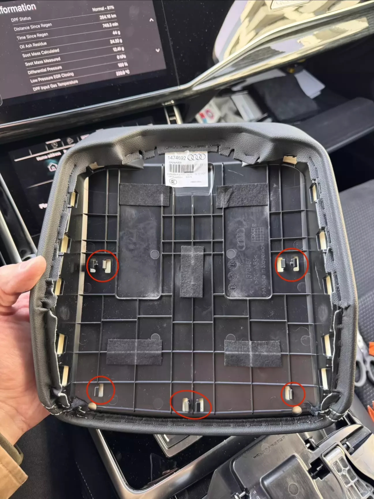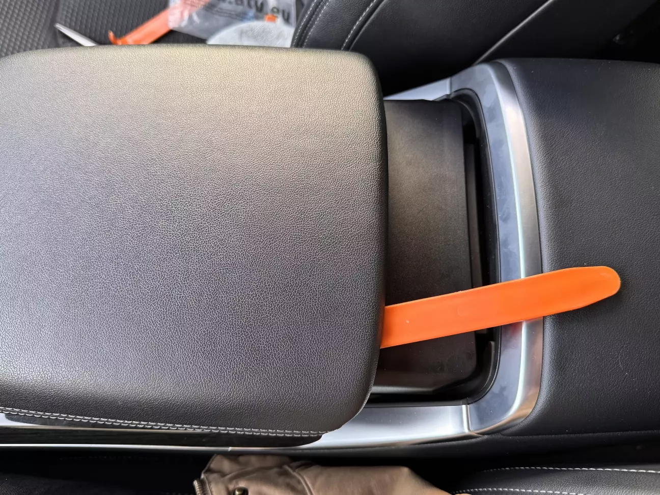 - нижній пластик мені не вдалось зняти (там маленькі зубчики - боявся поламати), тому сприскав в глибину середини підлокітника (в напрямку задніх сидінь, там теж є зубчики)