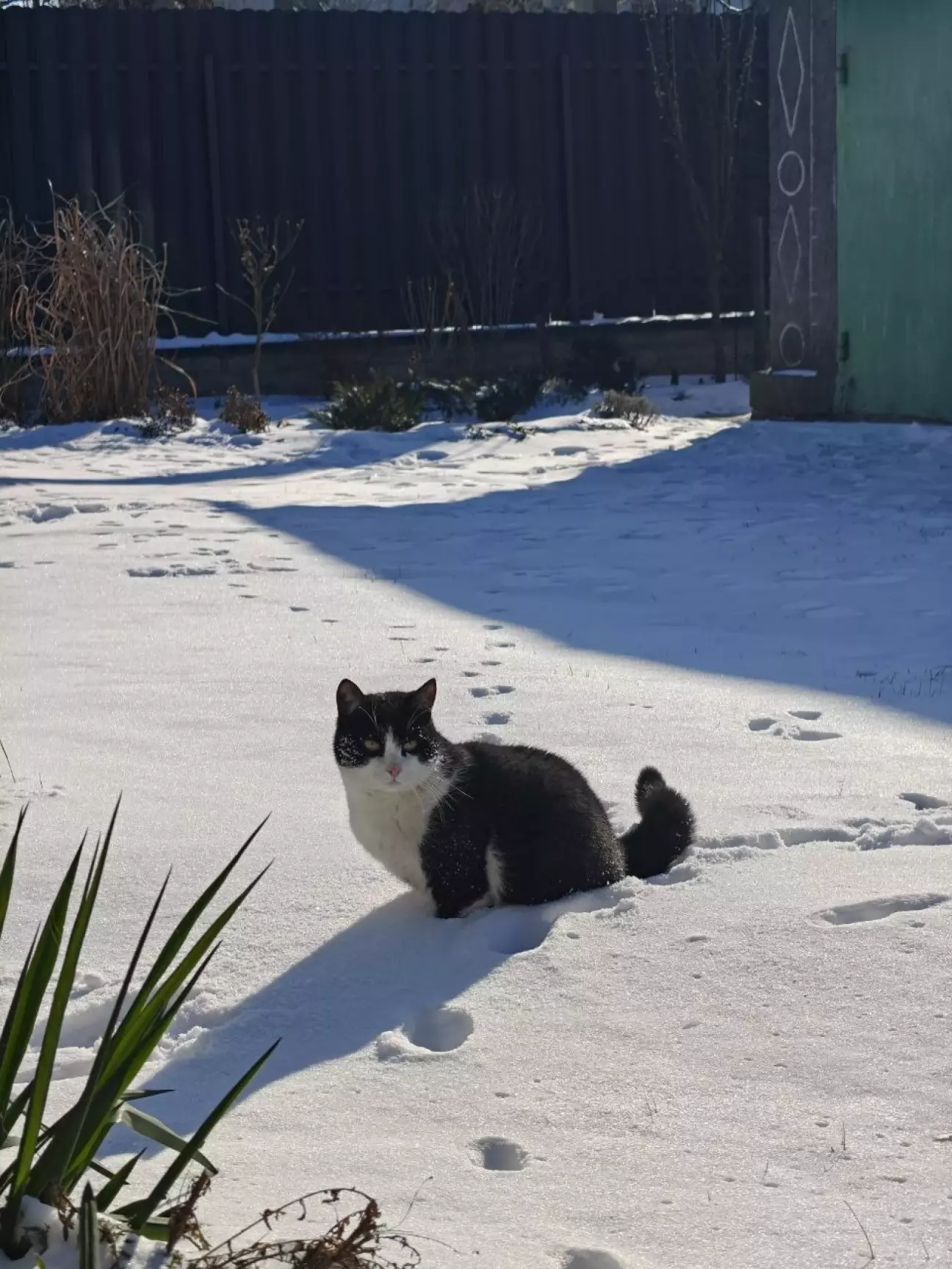 Коту теж зима зайшла, але гуляли вони сильно недовго. В лапки холодно.