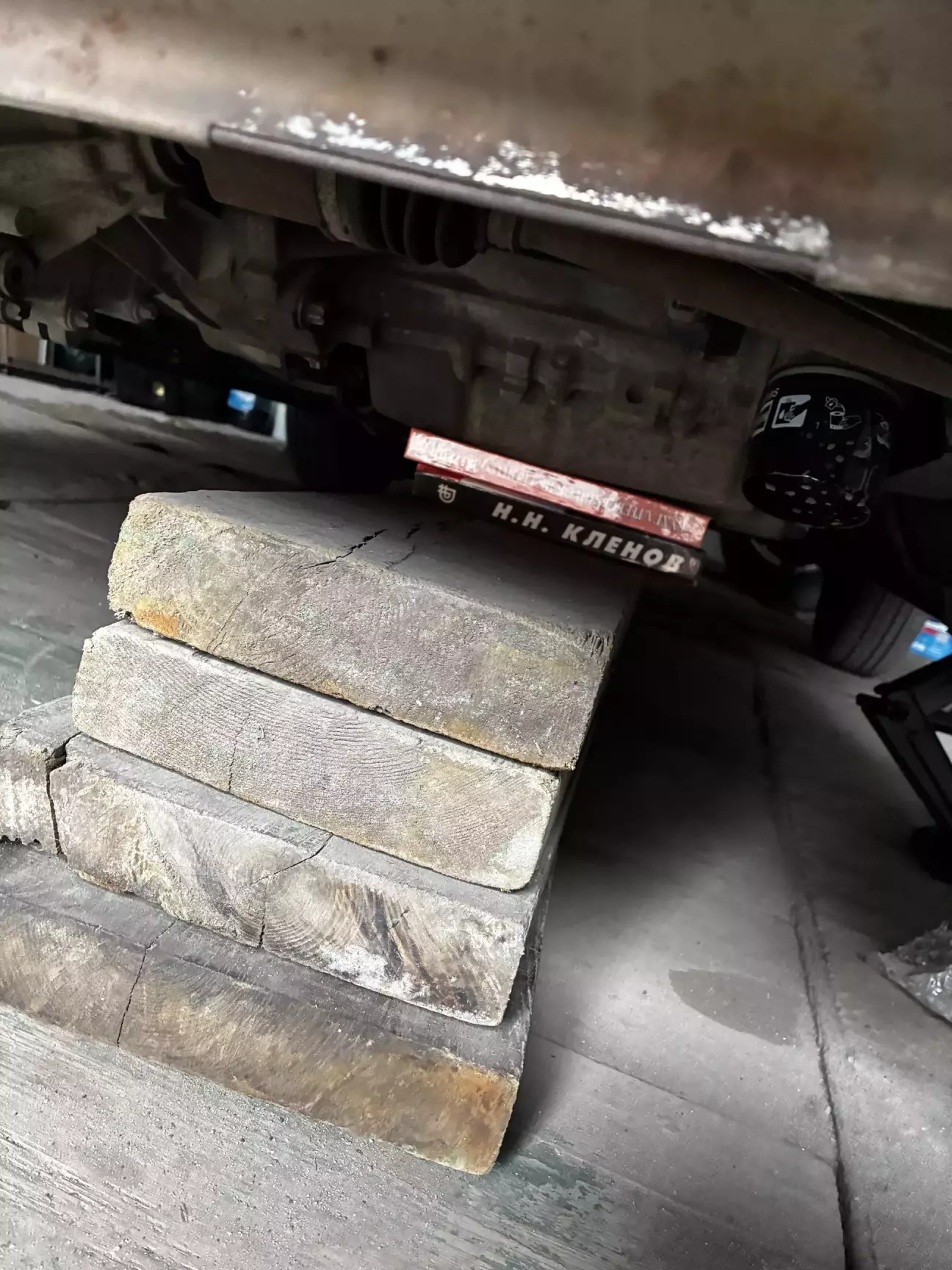 З неочевидного для мене — двигун потрібно трохи підперти/піддомкратити, щоб нормально наживити болти. Інакше просто не сходиться. Двигун також підпер дошками та книгами шоб було легше.