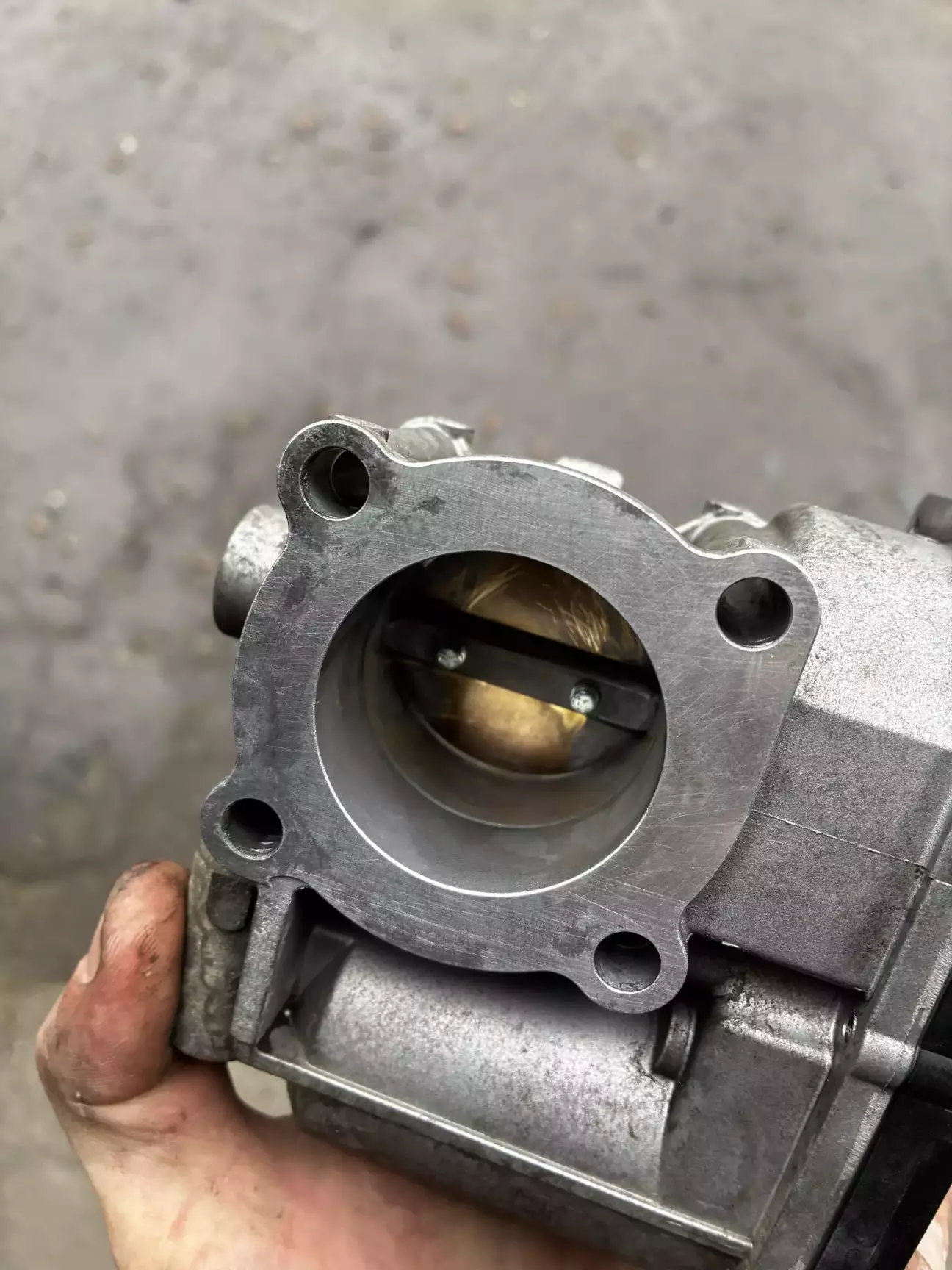 Якраз коли міняв ліву подушку, вирішив заодно глянути дросель — нагар був, тому зняв, почистив, змастив шестерні і поставив назад.