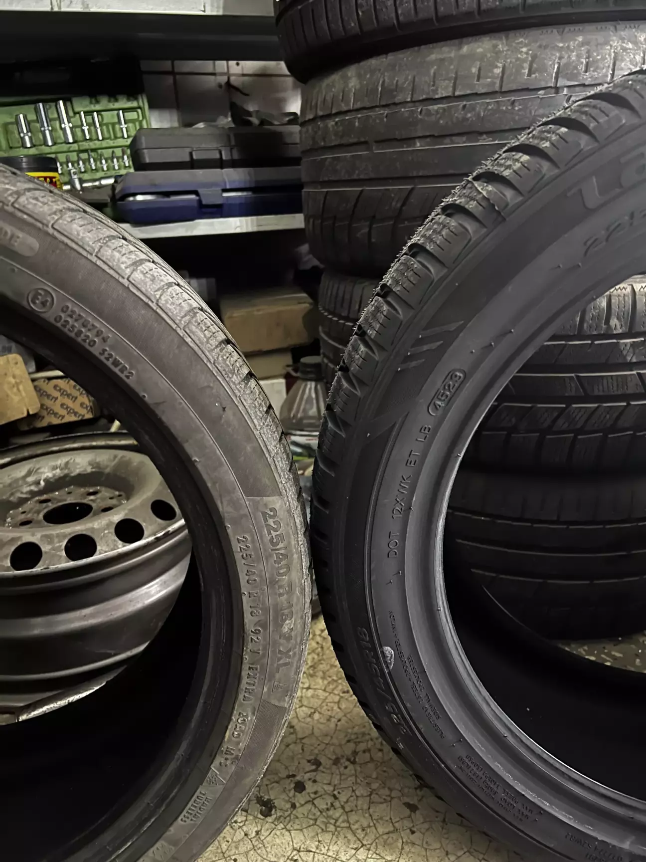 Заводський розмір гуми - 225/40/R18. Але я вирішив, що треба трошки збільшити профіль до 225/45,