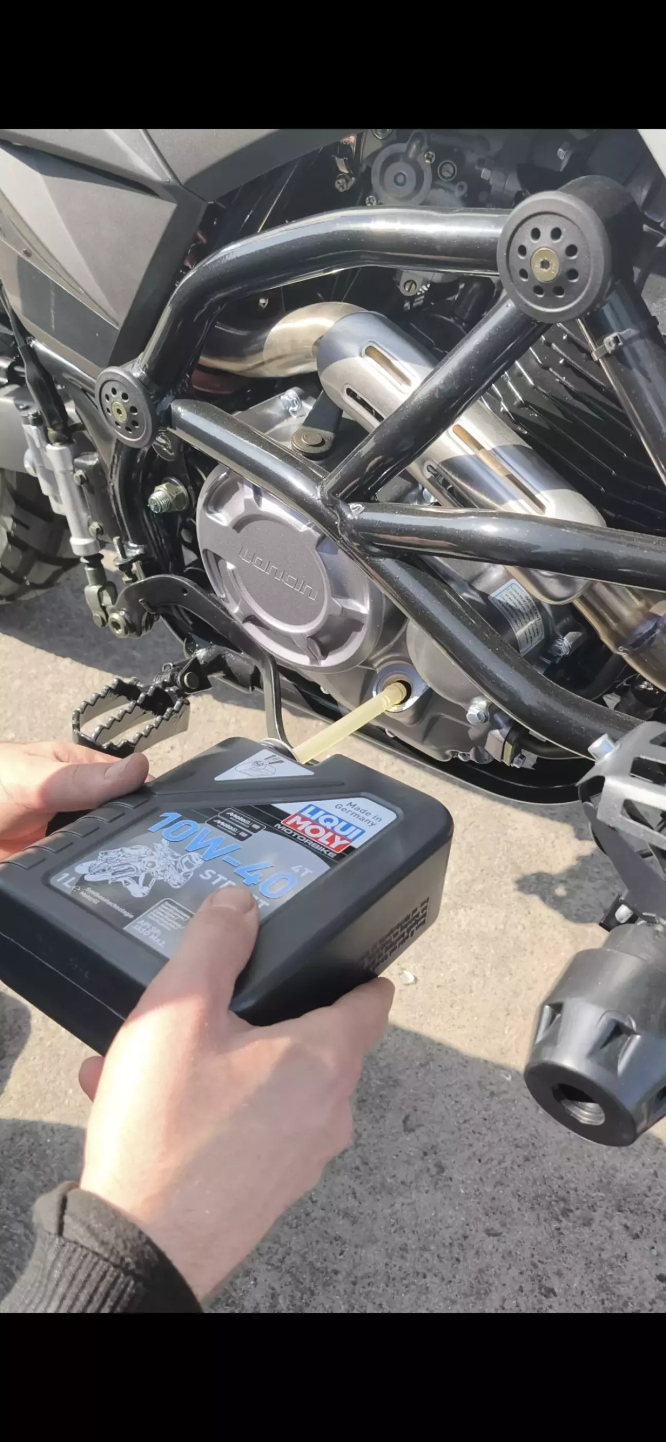 Перша заміна оливи була виконана на пробігу 30 км. Залито liqui moly 10w-40 street.