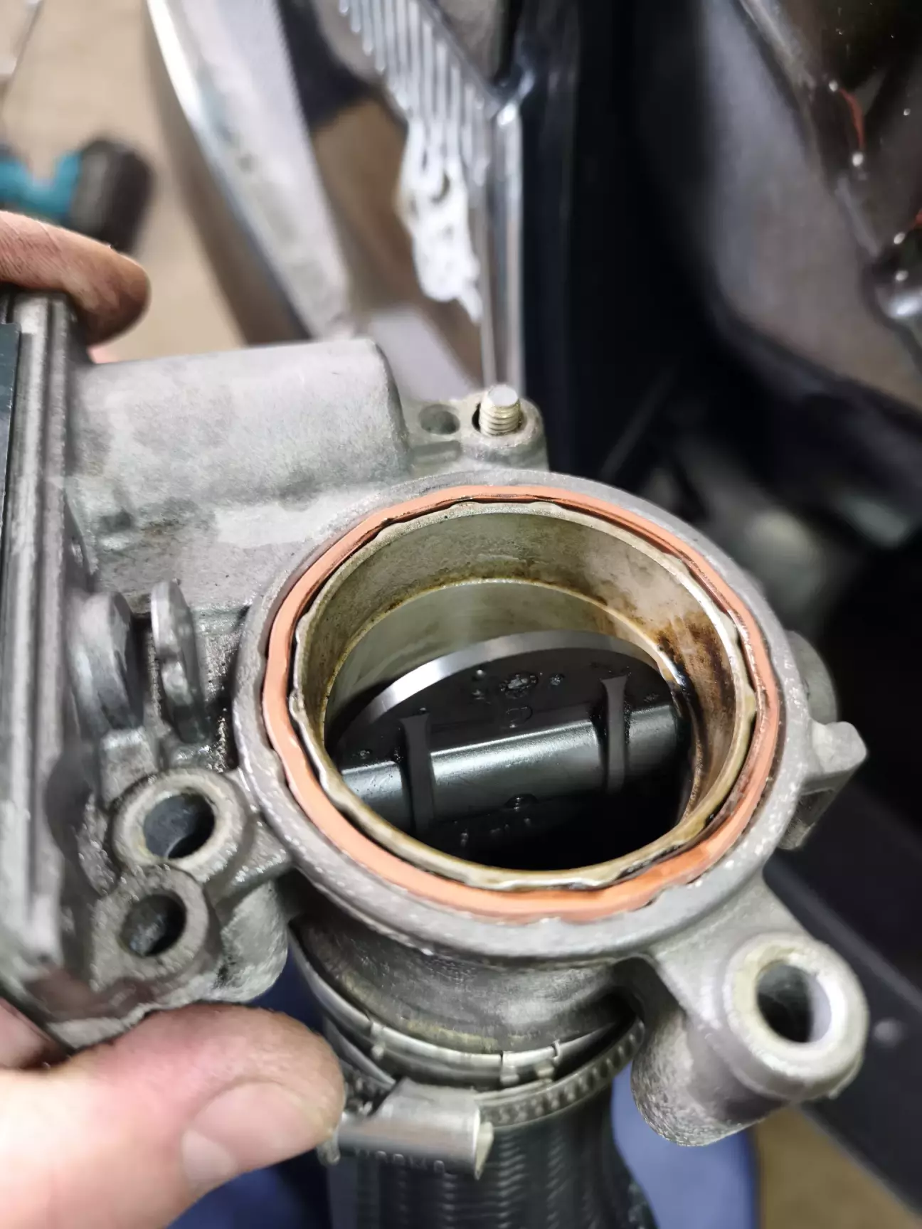 Ну а далі настав процес самої грязної роботи. Мийка та чистка впускного колектора дросельної заслонки та трубки клапана EGR.