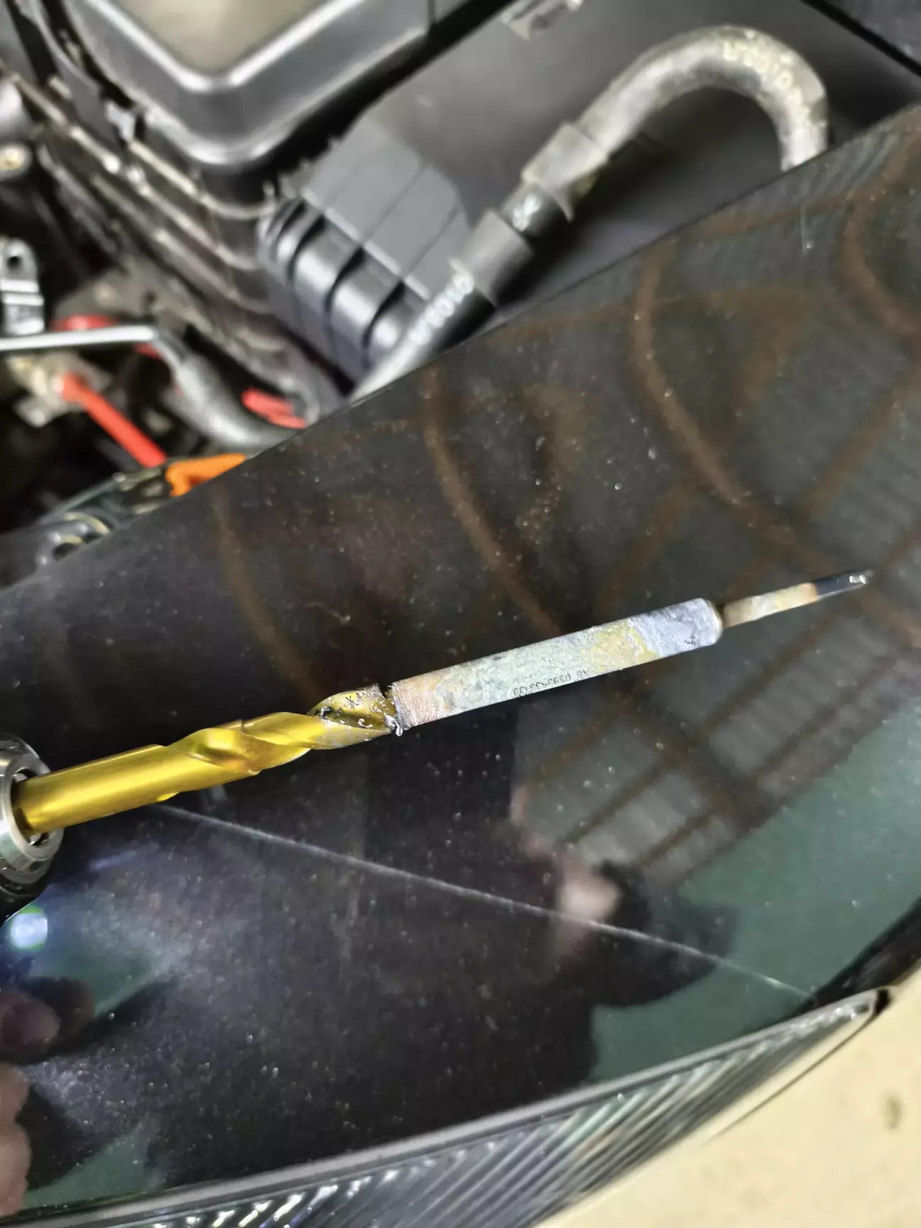 І що паніка у нас наступила. Мене поблизу нема я за 2000 від автівки. В голові зразу думки знімати голову розбирати пів мотора щоб вирішити цю проблему. Але так як кум не побоявся та вирішив висверлювати свічку. І завжди спокійний і на позитиві.