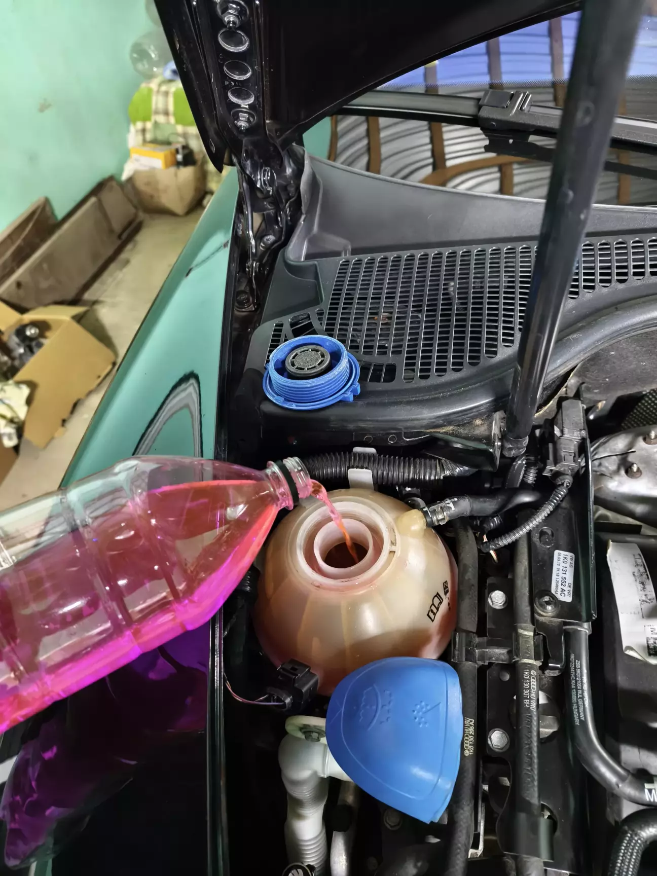 Також ще не забуваємо зробити два важливих кроки. Покласти трубку де ми зливали тосол на своє місце та залити тосол.