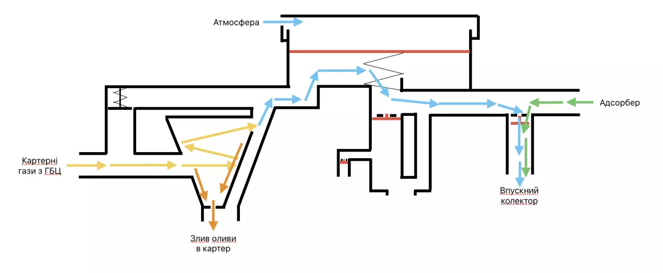 Як тільки дізнаюся, куди веде цей загадковий вихід — допишу в пості. Тут є важлива відмінність: якщо в ревізії BL через цей канал гази заходять із блоку, то в ревізіях AH, AP та BP він працює як вихід і має вбудований зворотний клапан.