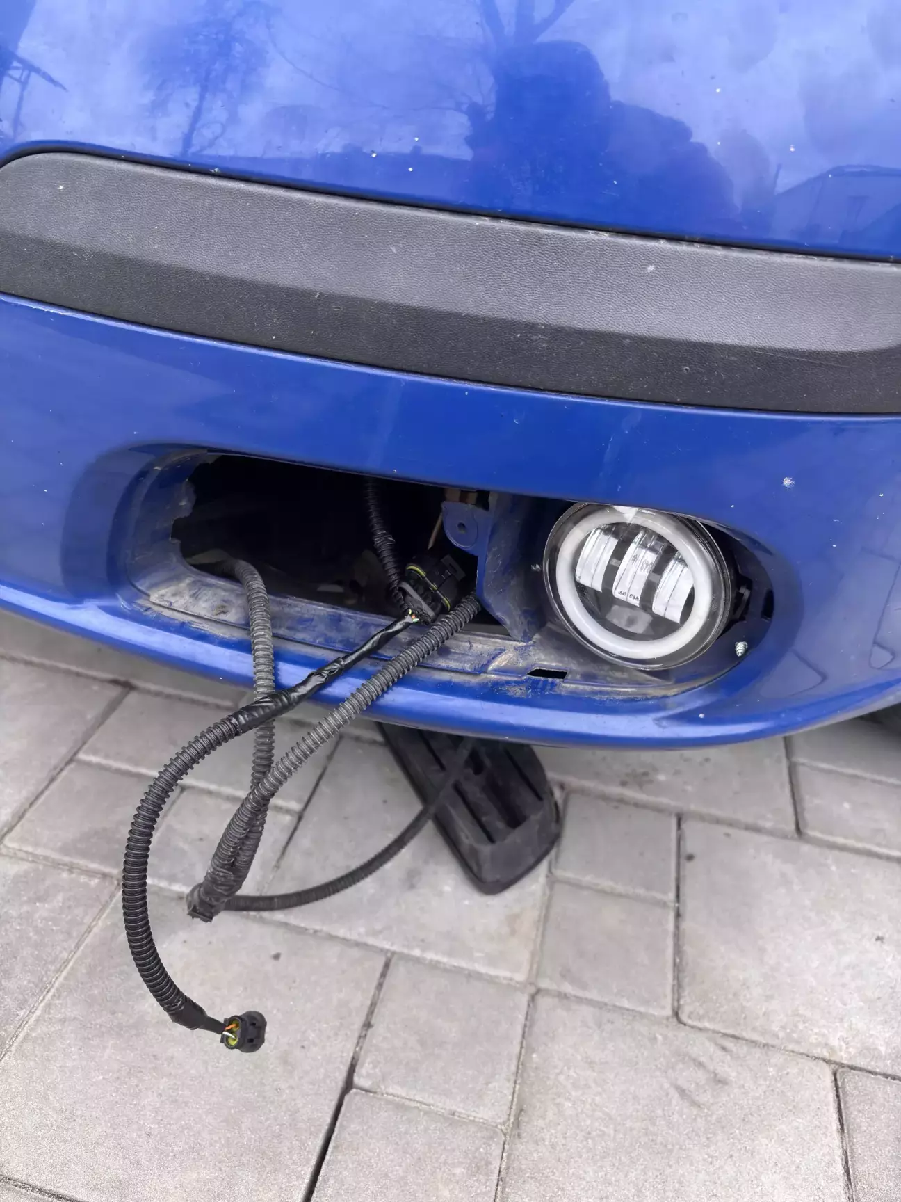 Ставимо бампер назад. Крім цього, я правдами і неправдами старався виставити горизонт на них. Далі проводка, дані туманки мають 3 функції: туманка, дхв (кільце), поворот. Я паралельно зʼєднав туманку і кільце. Шукав які є варіанти, не знайшов я отвору щоб легко протягнути, як описували в інтернетах. Так от знімаємо жабо, і під трапецією є фішки які заходять в салон, з допомогою гімнастики і багато матюків, якось тай вдалось протягнути.