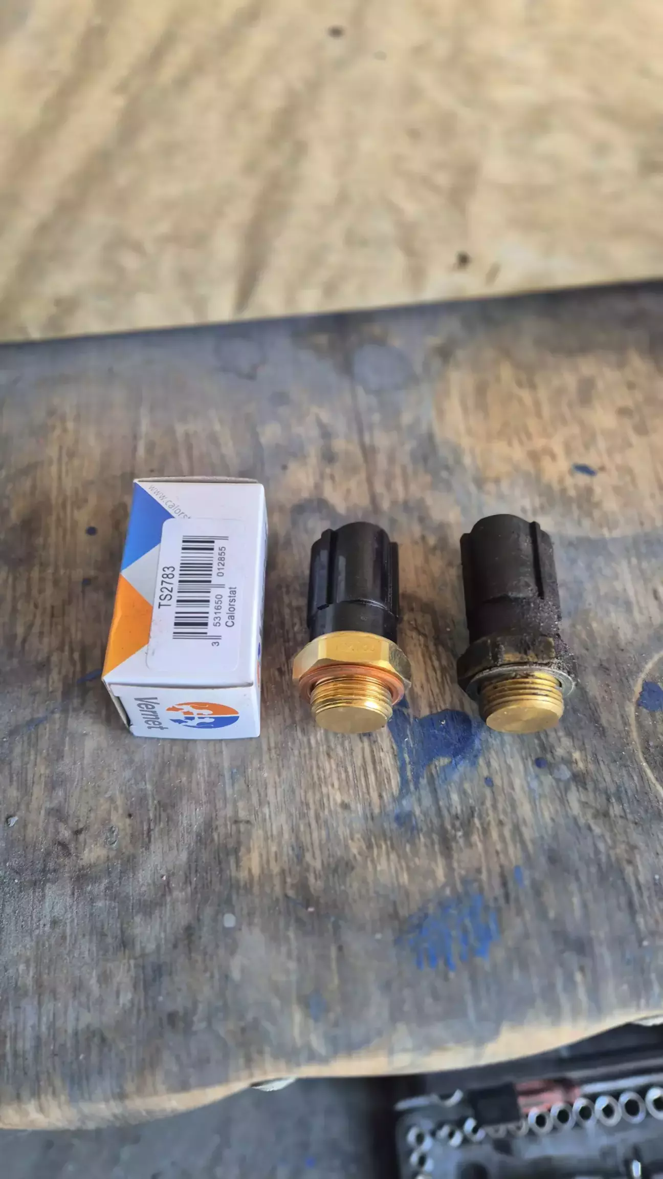 Знімаємо захист двигуна, зливаєм охлаждайку, відкручуем старе термореле, закручуєм нове.