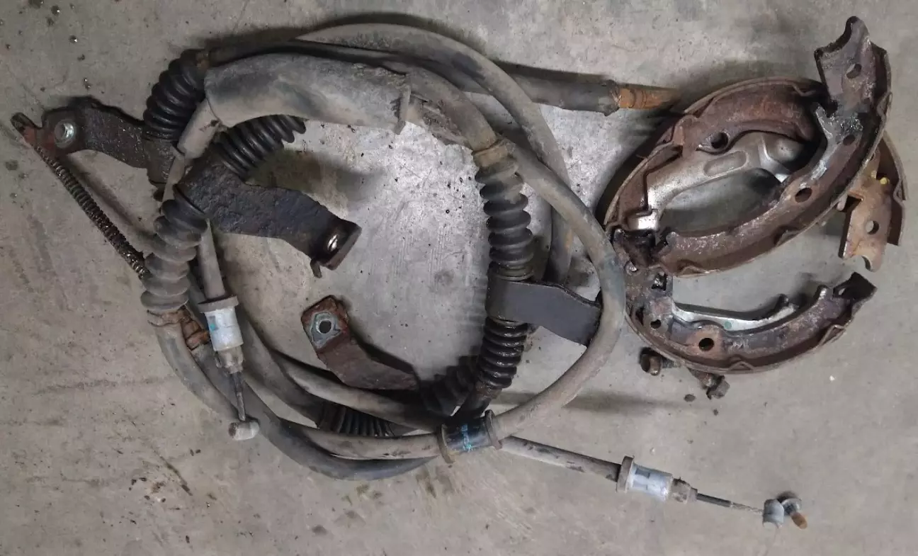 Правий трос підклинив та грів колодки, кріплення тросів в корозії,