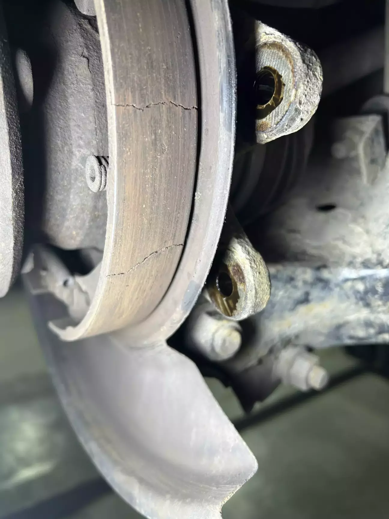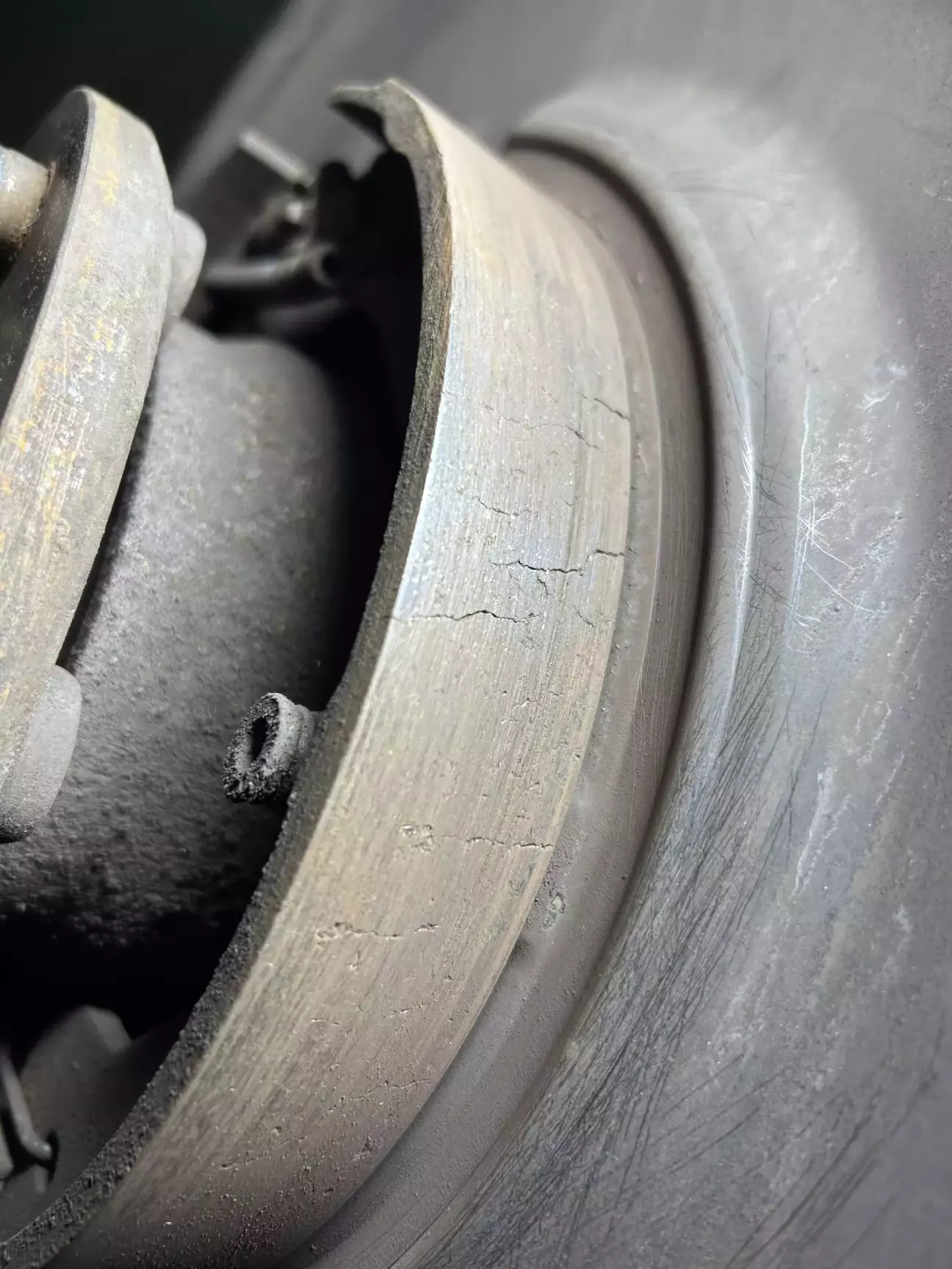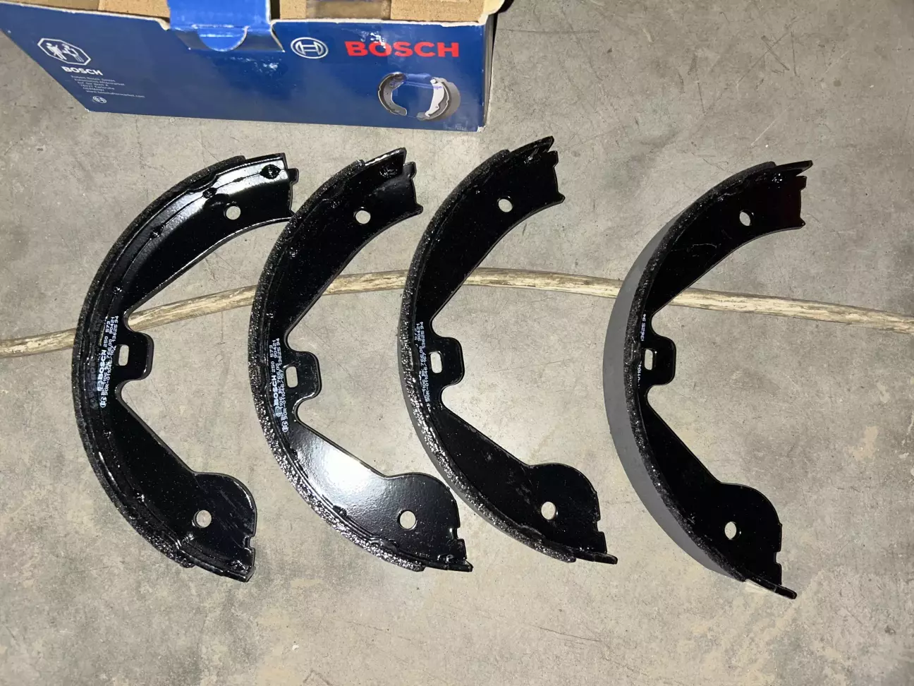 Знявши диски на очі попалися потріскані колодки ручного гальма, вирішено було до заказати і їх та теж замінити.