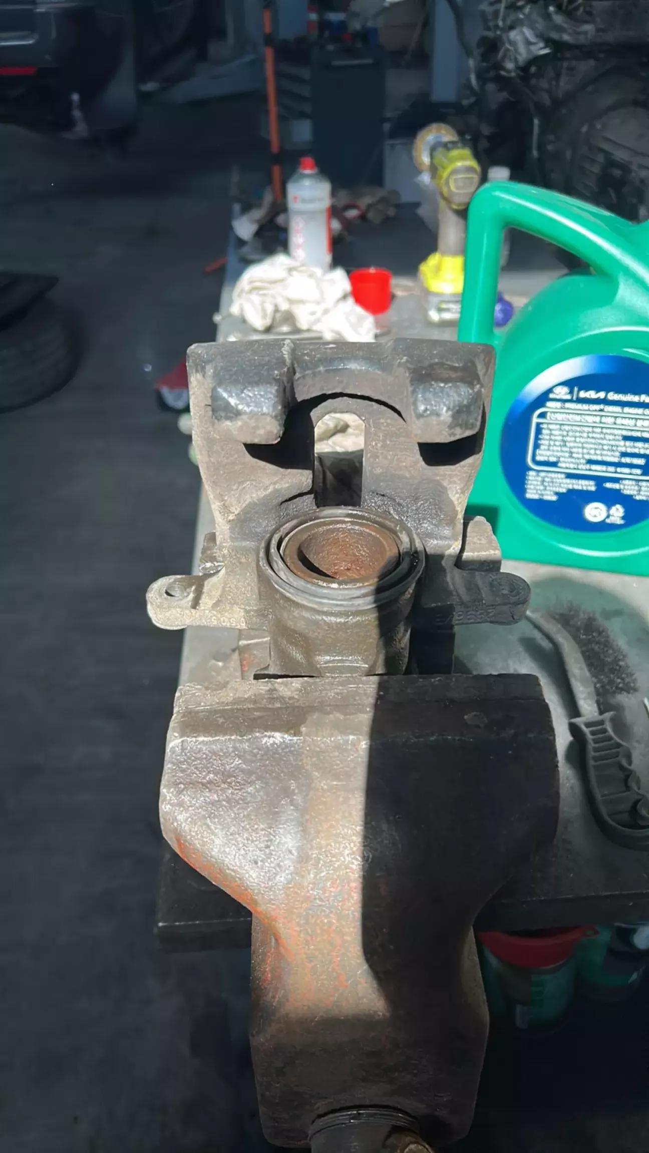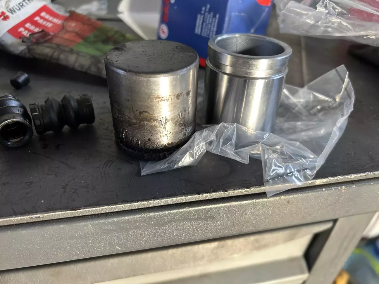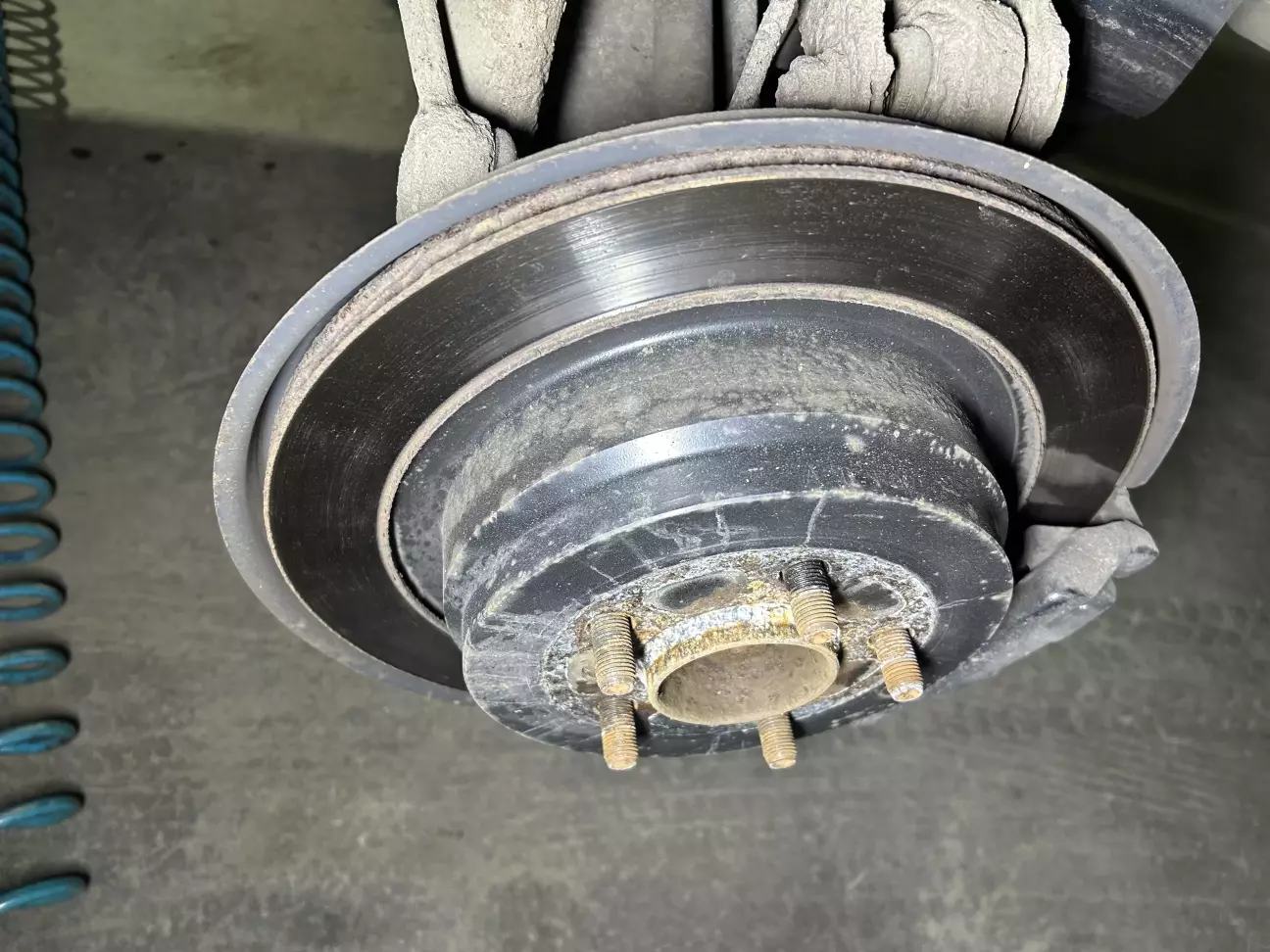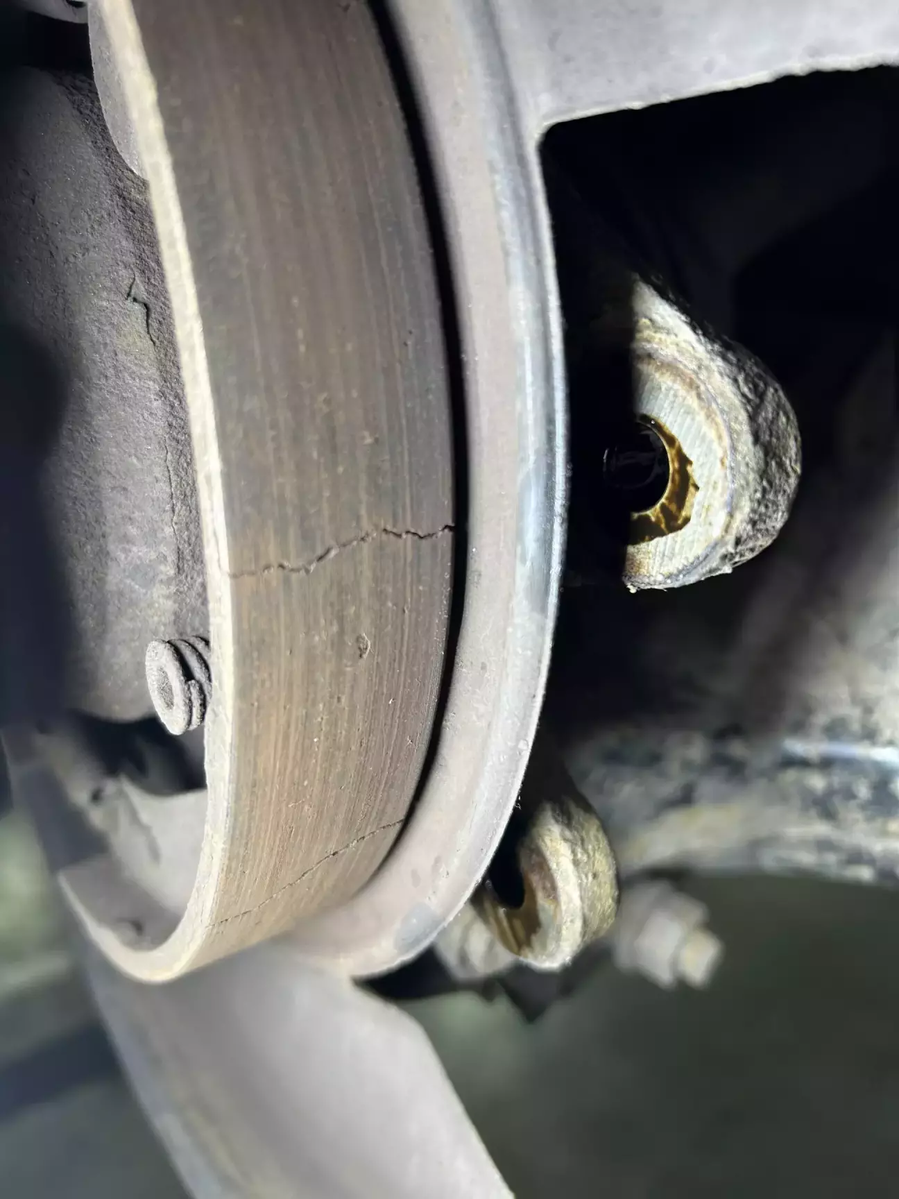 Знявши диски на очі попалися потріскані колодки ручного гальма, вирішено було до заказати і їх та теж замінити.