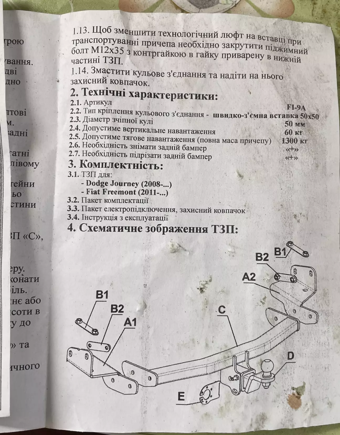 Ще з моменту купівлі авто планував встановити фаркоп, але все якось "руки не доходили". Щоб сказати, що часто він мені потрібен - то ні. Але інколи обставини вимагають його наявність. Плюс фаркоп можна використовувати як причепне для буксирування інших траспортних засобів, враховуючи факт, що у Джорні крюки відсутні.