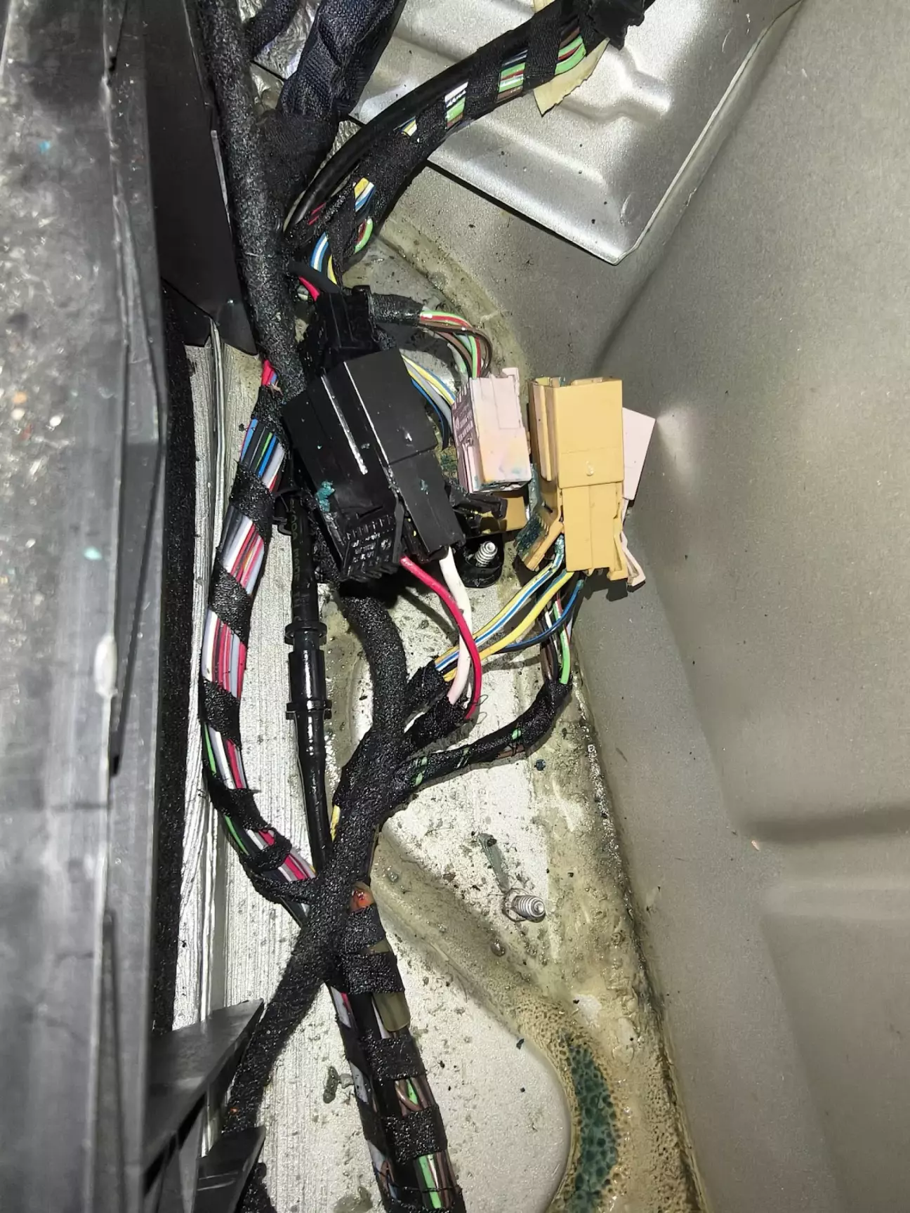 Цього разу я таки відкрив їх, підсвітив ліхтариком і був в легенькому шоці. В тій ніші пролягала траса склоомивача ляди багажника і на з'єднанні 2-х трубок тріснуло кріплення і вся ніша булаа залита синьою омивайкою, яку я тиждень назад залив в бачок. А збоку біля тріснутого шланга омиваючої рідини знаходяться клеми електрозамка задньої ляди, моторчика омивача, задніх ліхтарів і центрального стоп сигналу і все це благополучно купалось у бірюзовій ванні з омивайки. Сказати що я був в шоці - це нічого не сказати. Фото залитої ніші забув зробити, є вже фото після того як губкою забрав майже всю рідину, там було приблизно літр рідини. Накидав губок і паперу у всі щілини і залишив просихати на ніч. На наступний день перевірив клеми, всі були окислені. Залив їх добряче очисником контактів ї теж залишив на певний період, потім повторив процедуру ще 3 рази. Окислення пропало, контакти не повідгнивали, це добре. Поки залишив як є, не міняв колодку клем, все підключив, перевірив і все запрацювало)