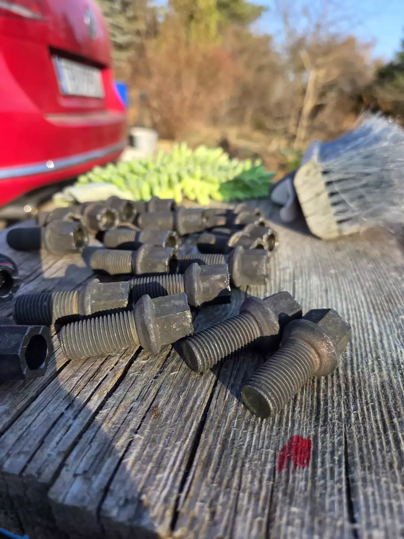Чи помічали ви, як іржаві капелюшки болтів здатні зіпсувати вигляд навіть найдорожчих дисків? Для мене залишити їх у заводському (читай — корозійному) стані на фоні свіжопофарбованих супортів було неприпустимо. Хоч вони і під ковпачками, але ж я це знаю, шо там біда... Тому я застосував свій стандарт обслуговування коліс, який гарантує і естетику, і технічну довговічність.