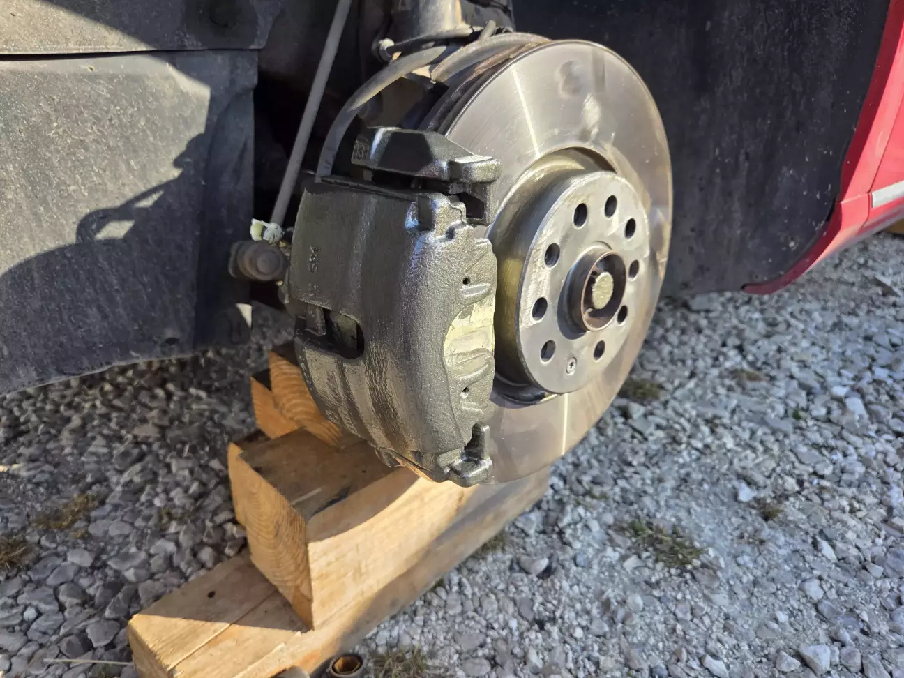 Carbon Grey спрацював саме так, як я і планував. Це не «тюнінг заради тюнінгу», це витончений акцент. У тіні дисків супорти виглядають як монолітні деталі з дорогого сплаву, а не як пофарбований чавун. Глибокий графітовий колір ідеально гармонує з металевим блиском гальмівних дисків, створюючи образ доглянутого, технічно досконалого автомобіля.