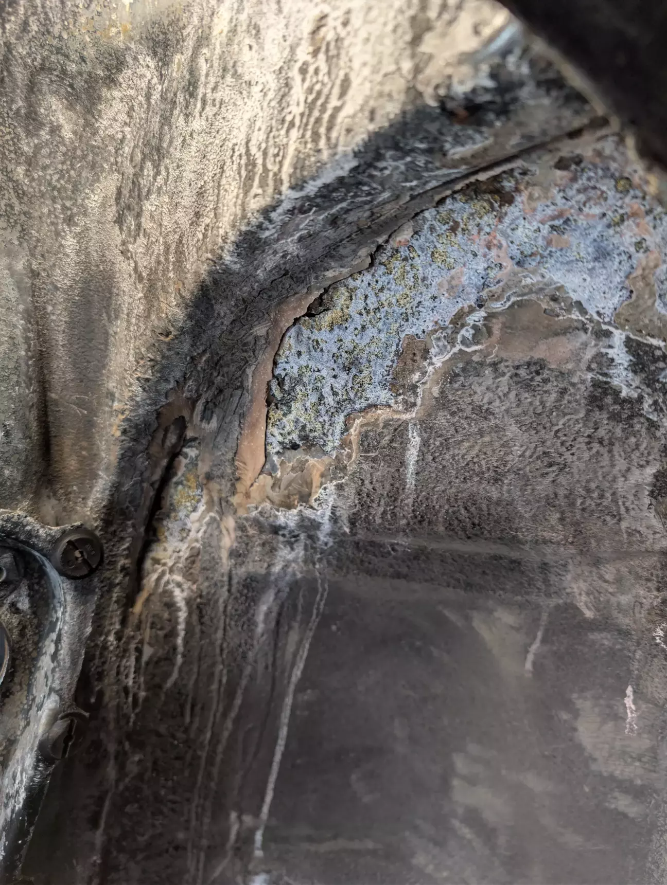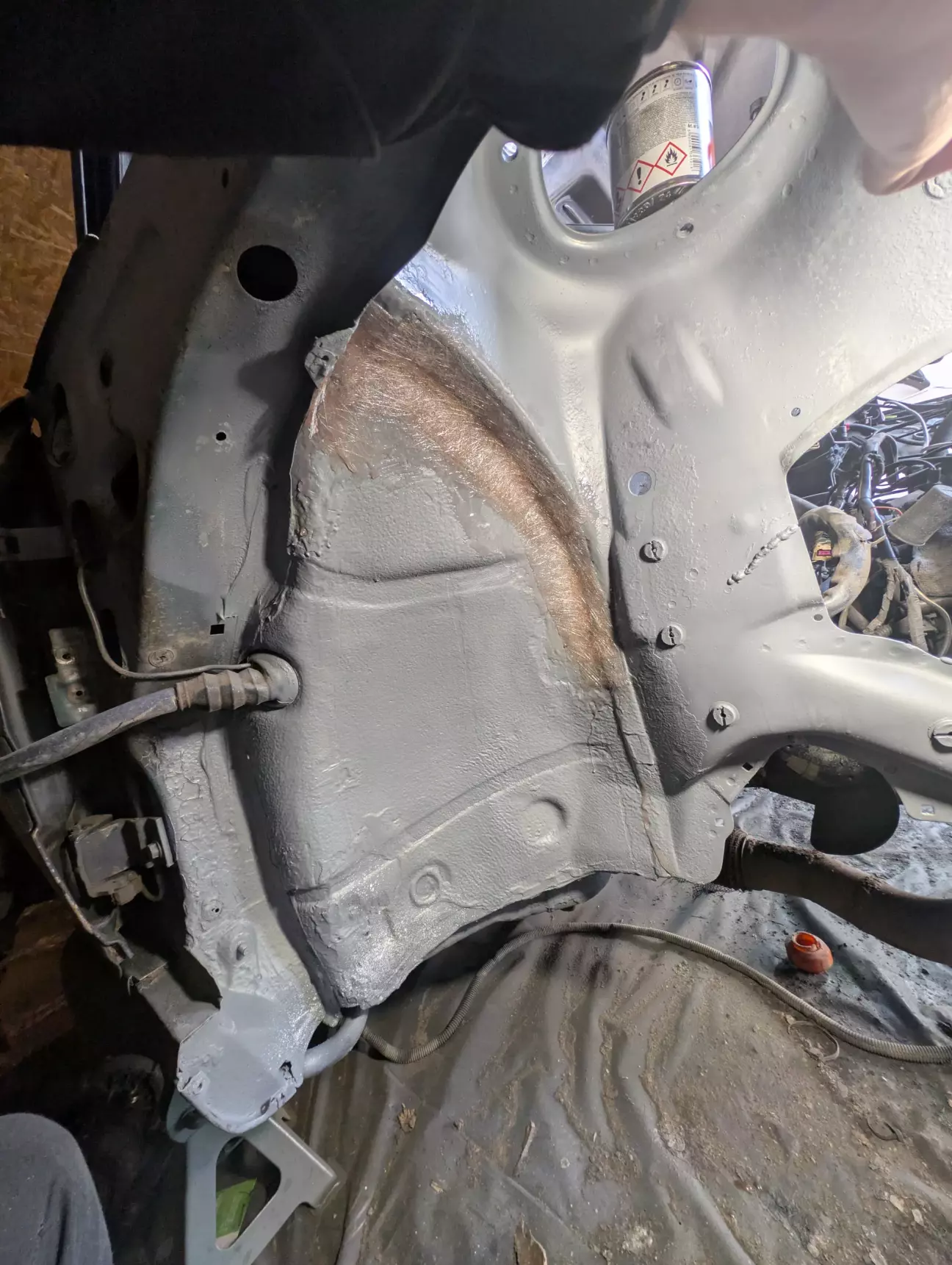 Після зварювальних робіт почались підготовчі роботи по відновленню лакофарбового. Де були найменші підстави до корозії, чистилось до блискучого металу. Потім оцинковка, епоксидний ґрунт.