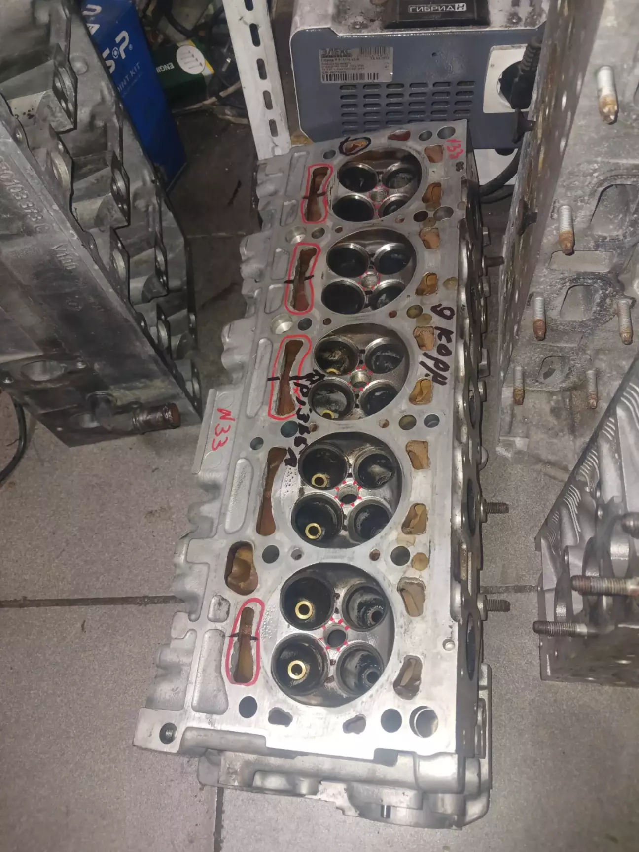 Про двигун. І все, що під капотом. На даний момент більшість всього знято, і сам двигун, як видно по фото, без ГБЦ. Це все не просто так: голова була в жахливому стані. По її діагностиці було більше 10 тріщин різного характеру.