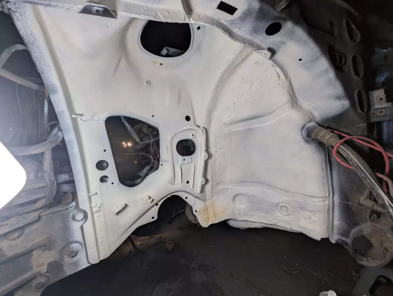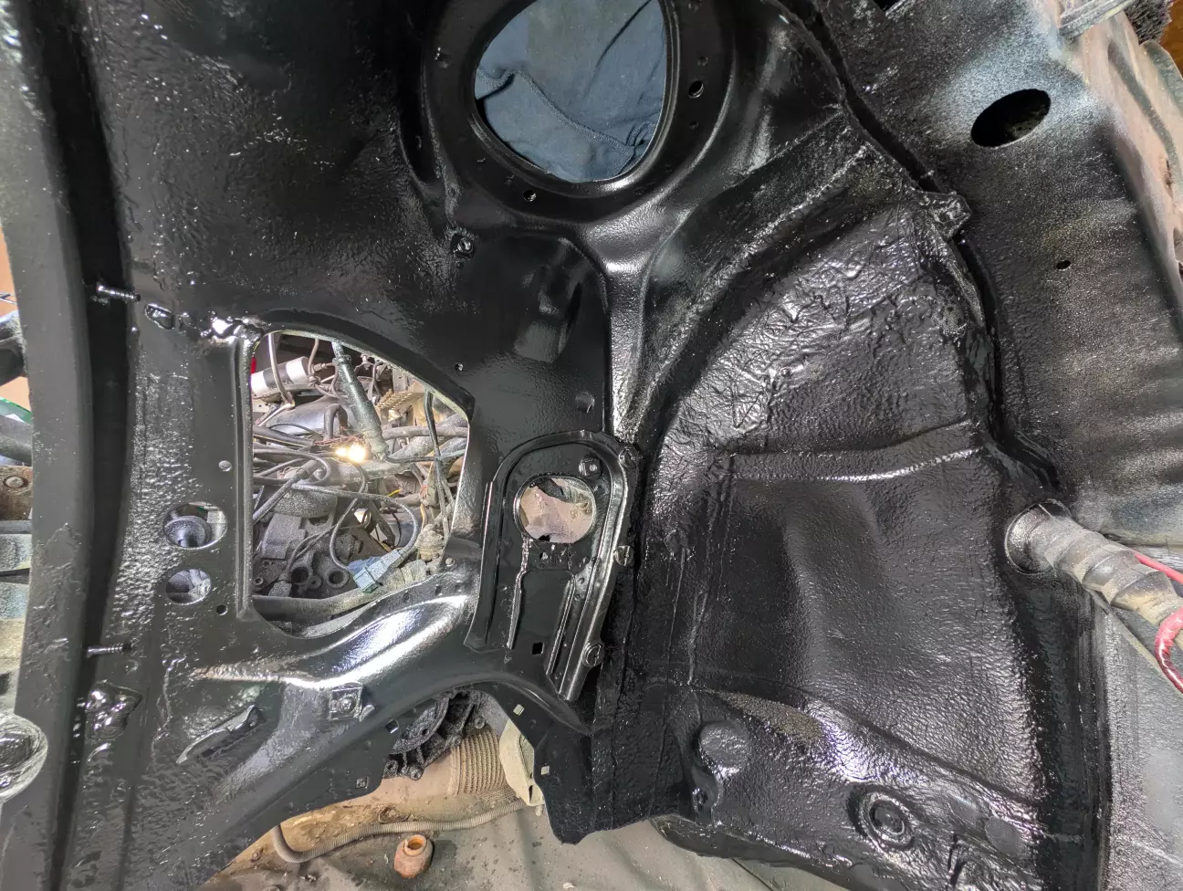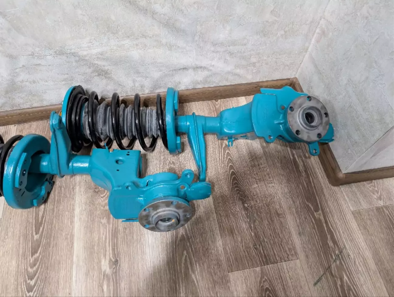Опори амортизаторів теж поїхали на реставрацію і поліуретан. Після того, як повернулось, — відразу повне лакофарбове покриття.