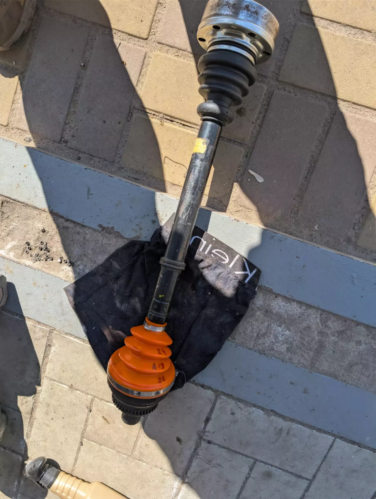 З того, що прийшлось напрягтись. Привода передніх коліс на автівці були явно не рідні, і при цьому вони були різні. Самі ШРУСи в непоганому стані, але потребували обслуговування і заміни пильників. Тому довелось дістати із чудесної коробки привода, які ще давно придбав в того ж самого Дімона Кідали, і з двох комплектів зібрати один. На даний момент привода такі, як мають бути, і всі повністю обслужені. Єдине, що я не зробив і жалкую, — це те, що не відновив їх лакофарбове. Відпіскоструїти і пофарбувати їм зовсім не зайве, але час піджимає, тому вирішив поставити як є. Самі ШРУСи в достойному стані, тому просто відмив, змазав і поставив нові пильники.