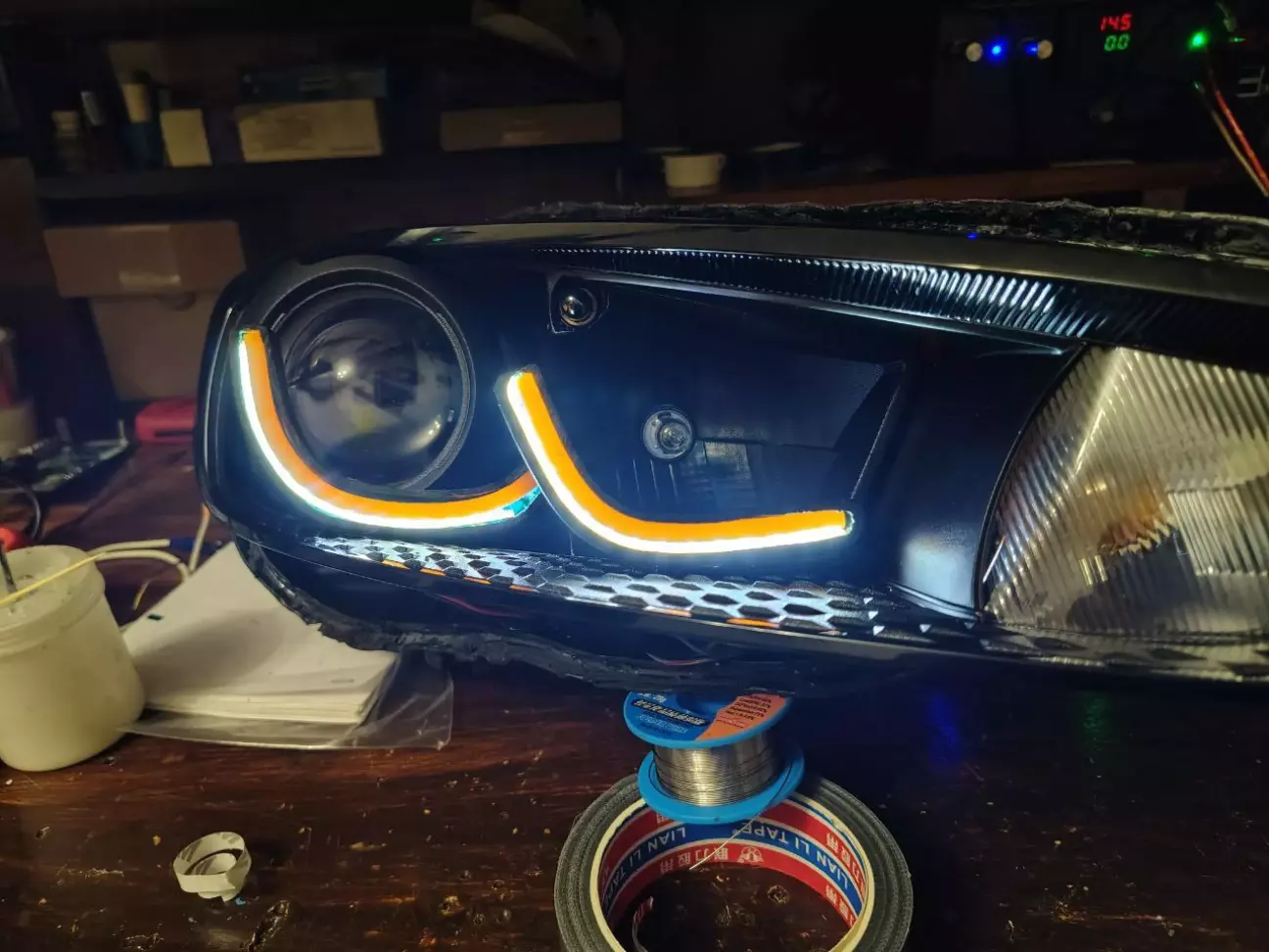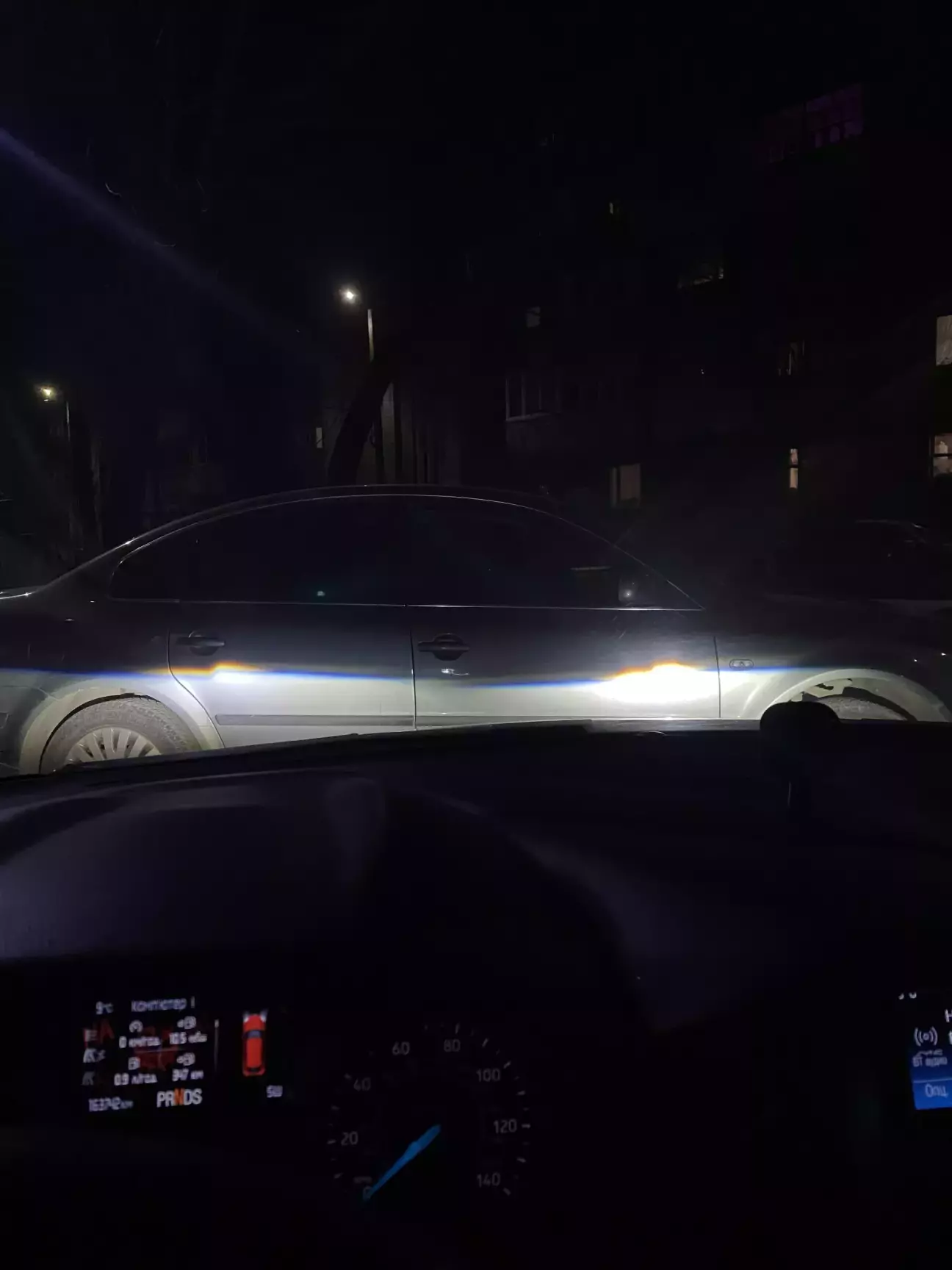 Ну і цей день настав) заробила гроші, всі прогалини позакривала і дійшла справа до нового скла) На той момент я захотіла замінити червону стрічку на білу. Чому? Тому що помаранчева неонова просто нереально гарно світить і потреби в червоному не було, світило червоним воно не дуже ну і їздити з ним в планах не було з самого початку, бо всі знають причину чому) то був задум для фоточок всяких, не більше, а виявилось непотрібним т.я. оранж виходив топовим в будь-яку пору доби. Рішення було замінити стрічку на холодний білий і це було чудове рішення! Як же гарно воно світить і плюс забрали ДХВ та є чіткість ліній і гарний контур без розмитості. По-перше, це легально, а по-друге, гарно, а ідея без ДХВ взагалі не погана. Якщо що, його можна повернути за бажанням і не розбираючи фару ✅ Доречі, це тепер не вводить в оману водіїв, які бачили повністю заповнену фару та могли подумати, що я на дальньому. (Таке бувало, хоч бі-леди і налаштовані правильно та точно не сліплять)