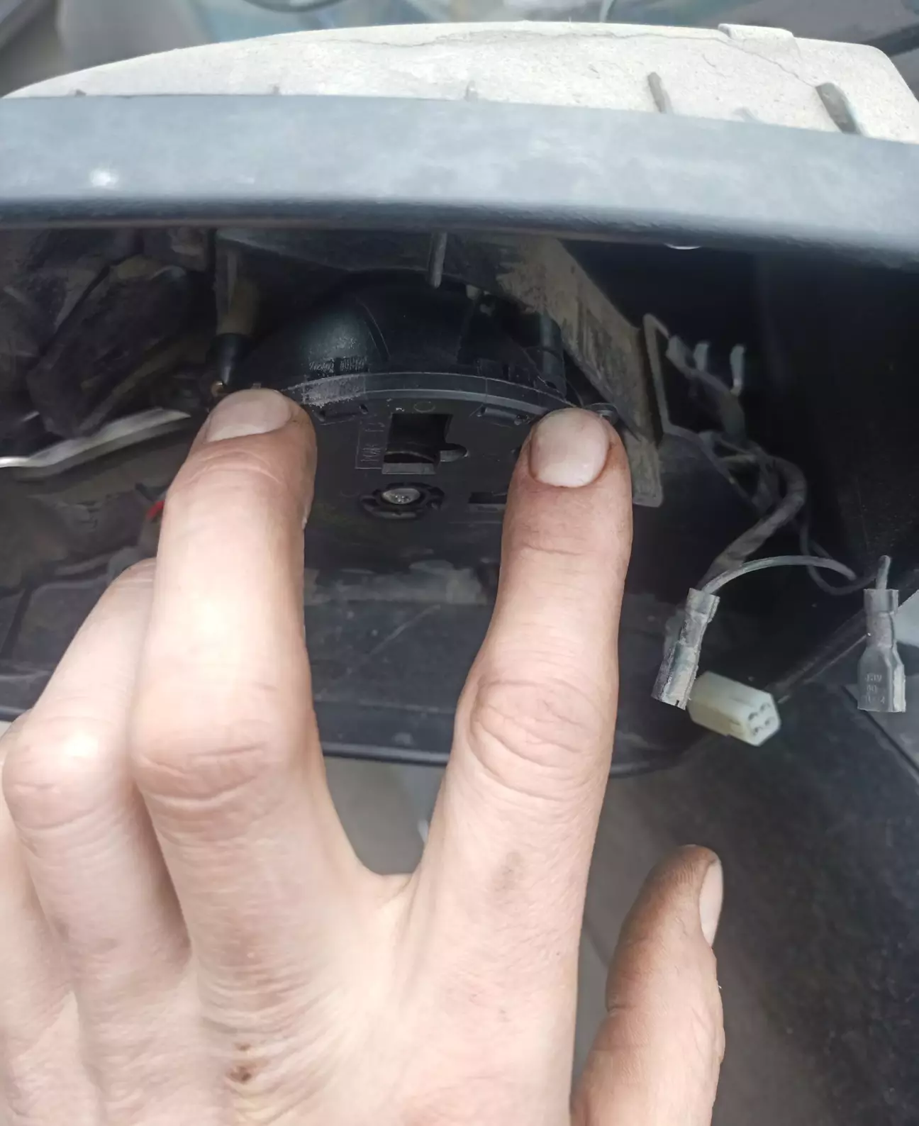 Спочатку треба зняти дзеркальний елемент. Опускаю дзеркало максимально вниз і там де на фото пальці, буде видно застібки. Їх треба піддіти крючком одночасно тиснучі на дзеркало вниз і на себе.