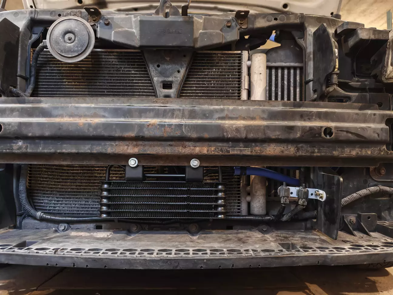 - одягаємо патрубки на радіатор та починаємо приміряти, щоб все влізло та ні об що не чіплялось... Найкраще (як для мене) посередині, патрубки не сильно згинаюсьтся і плавно заходять в середину моторного відсіку.