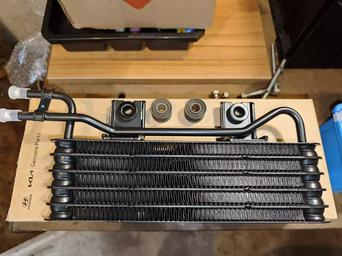 Я зупинився на найпростішій схемі підключення радіатора (як штатно реалізовано на GRANDEUR (EL/TG), SONATA IV і CARNIVAL/SEDONA (GB/VQ)) після теплообмінника перед АКПП на "обратку". Це там, де у нас у стоку встановлений шланг Hyundai-KIA 254202H610 довжиною 45 см (від верхнього патрубка ТО до штуцера звороту АКПП).