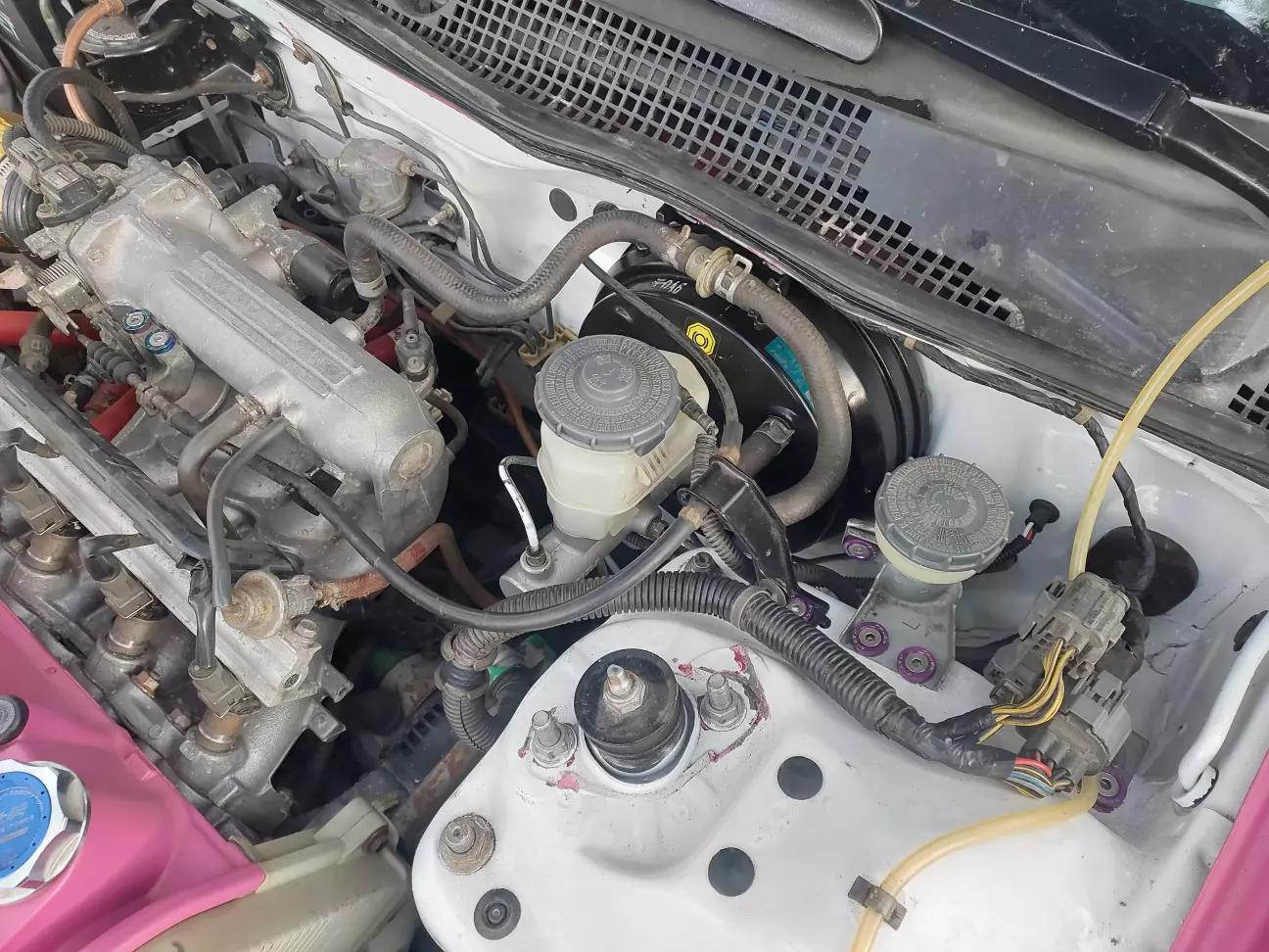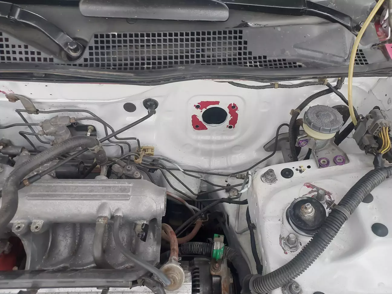 Фото підкапотки без розпорки передніх стаканів, бачок ГГЦ заважає її встановити, буду варити нову. Завтра придбаю ДОТа і прокачаю гальма.