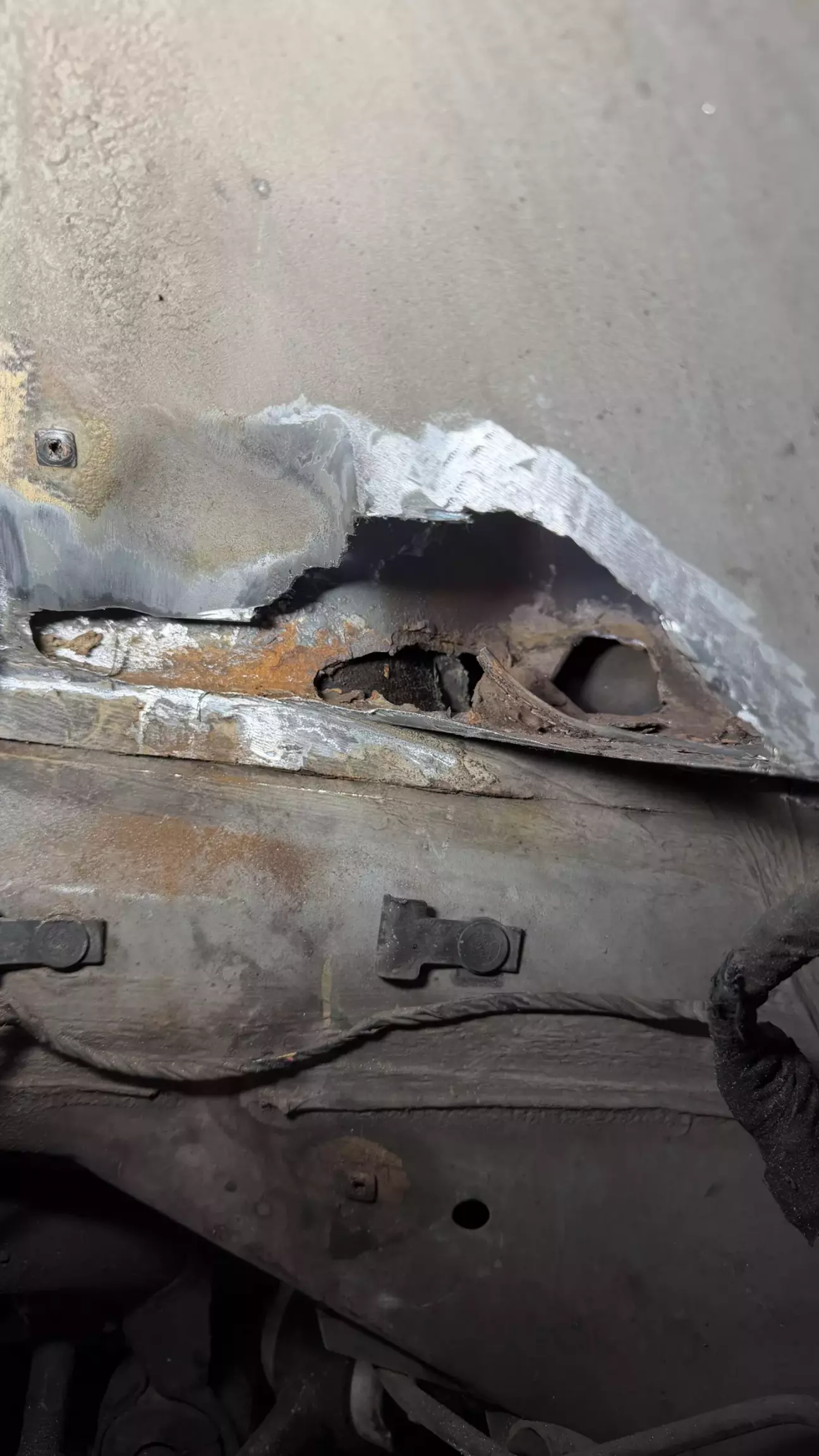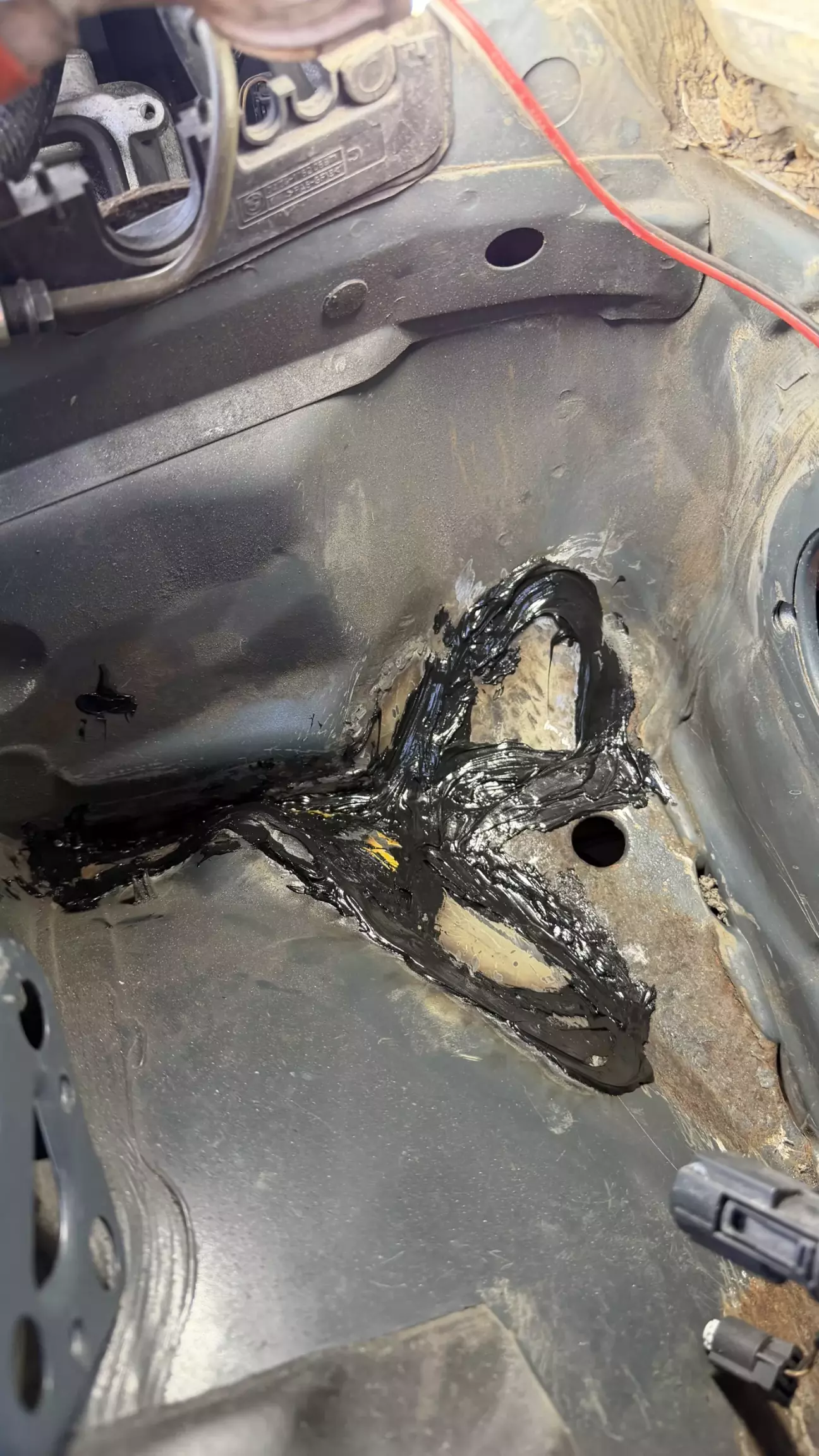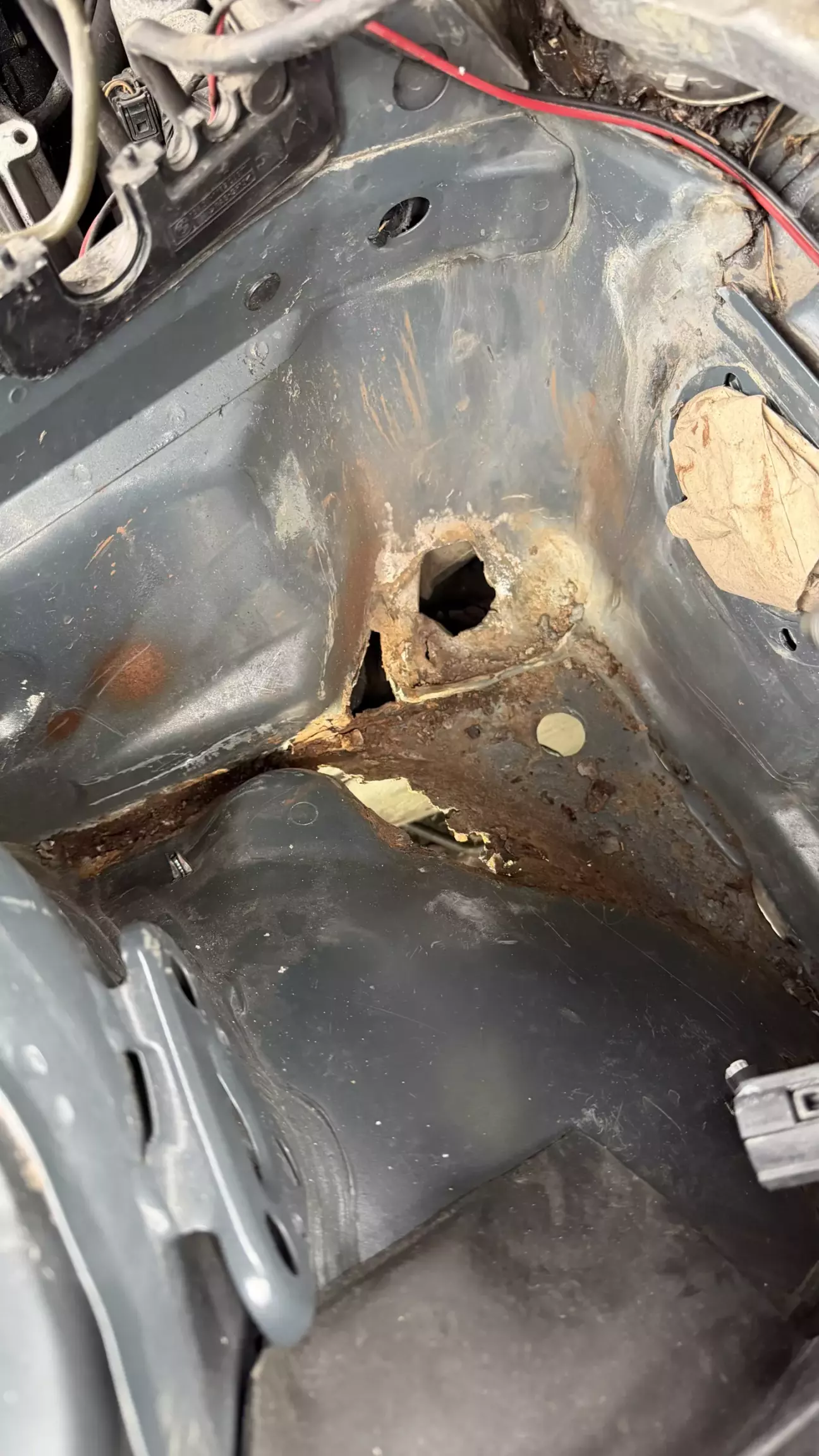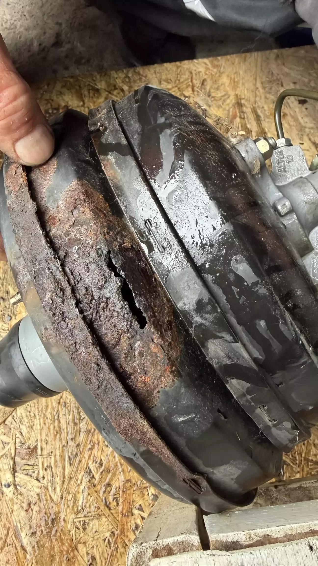 Тормоза стали дубовые, как на заглушенной машине. Есть у 38 болячка с вакумником, со временем, под ним заводская «шуба» накапливает влагу и начинает гнить, и вакумник и место под ним. Услышав шипение, понял, что пришел ему конец. Но решил я делать на совесть и ставить вакумник от Е65. Он намного лучше и не гниет. Вытащил вакумник, открылись мне дополнительные отверстия. Чего быть не должно. Все зачистил, сделал латки, хорошо обварил, зачистил швы, промазал кузовным герметиком, дал сутки высохнуть, загрунтовал, покрыл грунтом, потом краской. А под подкрылком антигравием. Чтобы установить вакумник от Е65: он должен быть от V8. Вот код его (