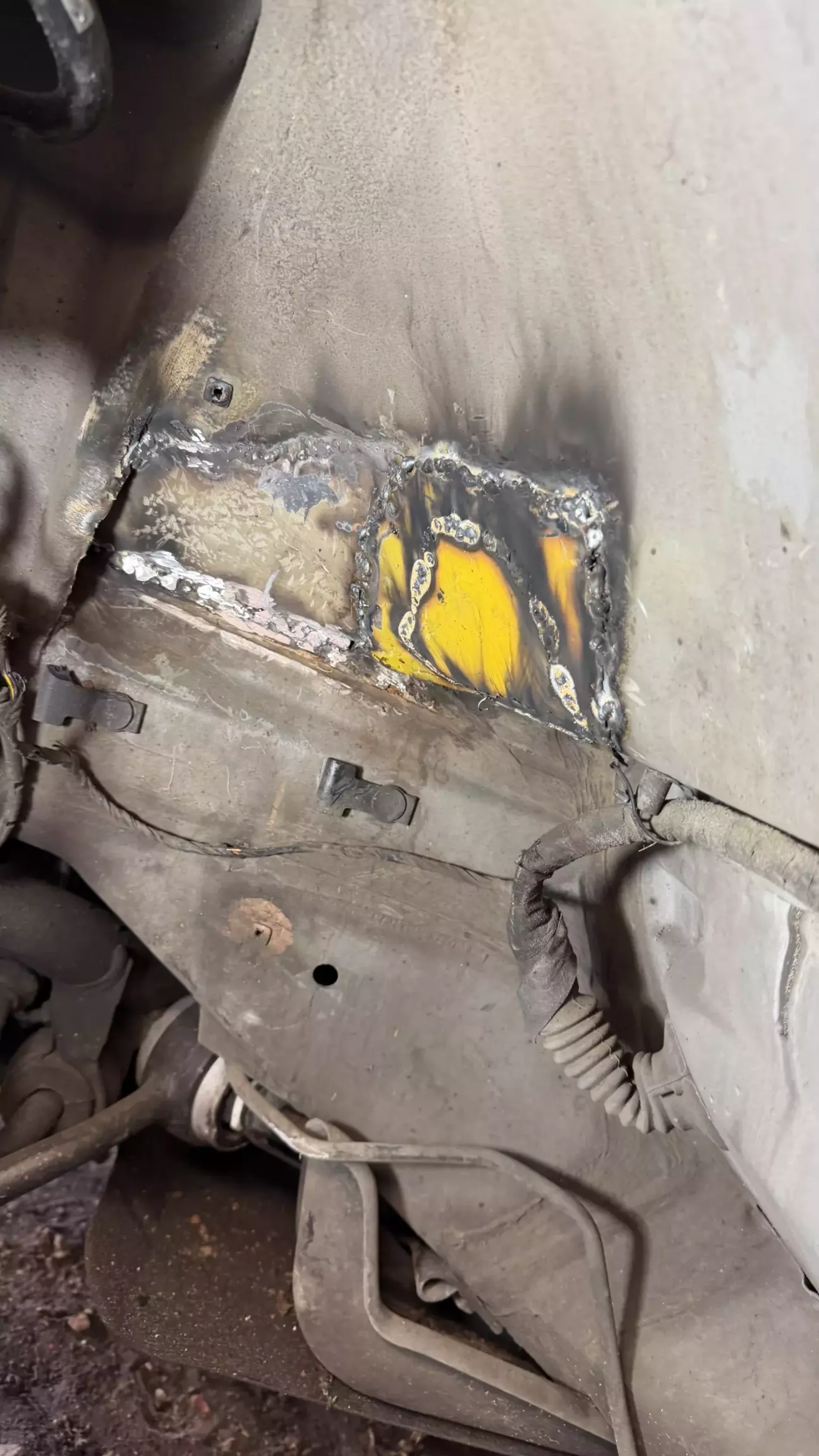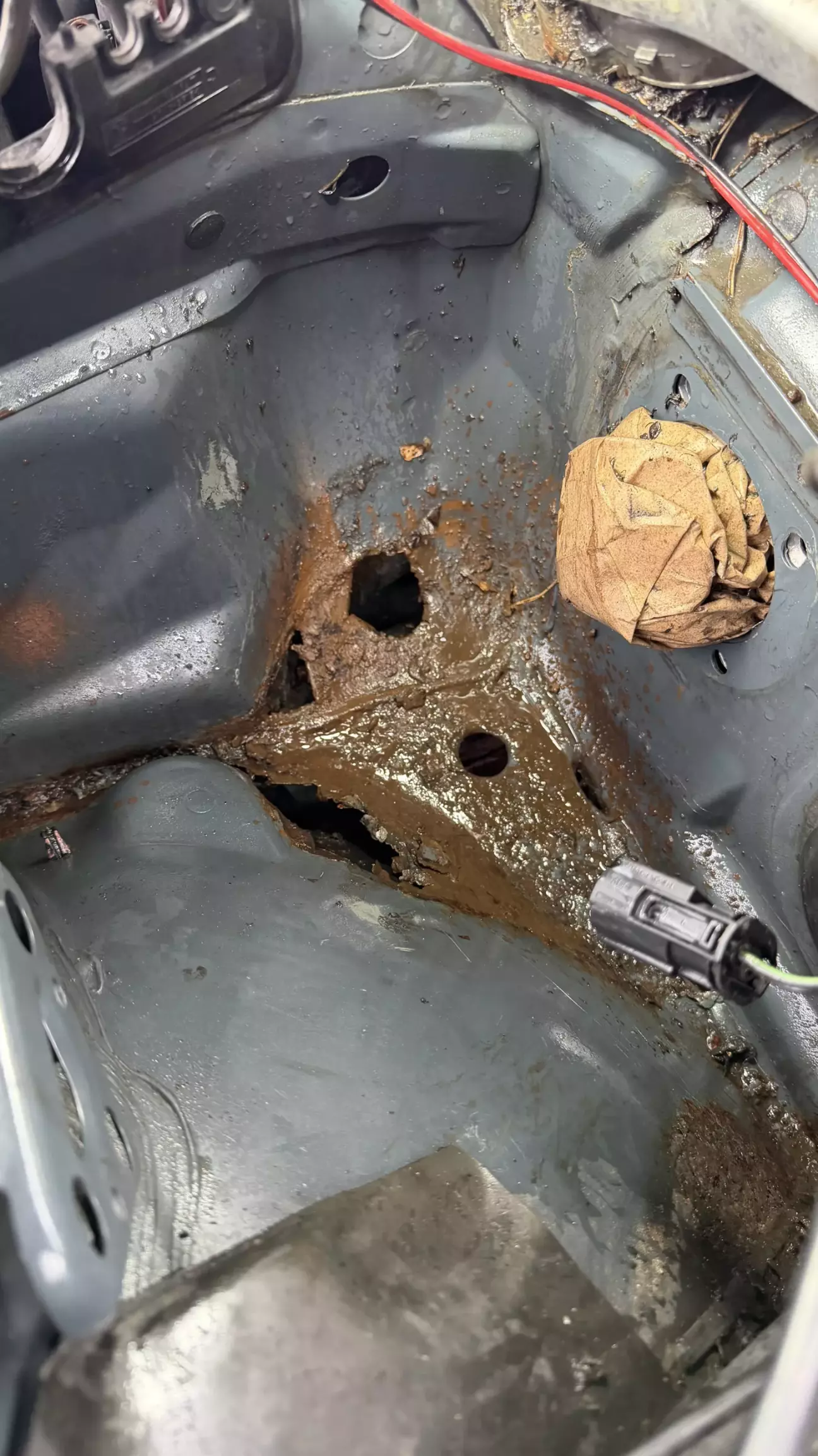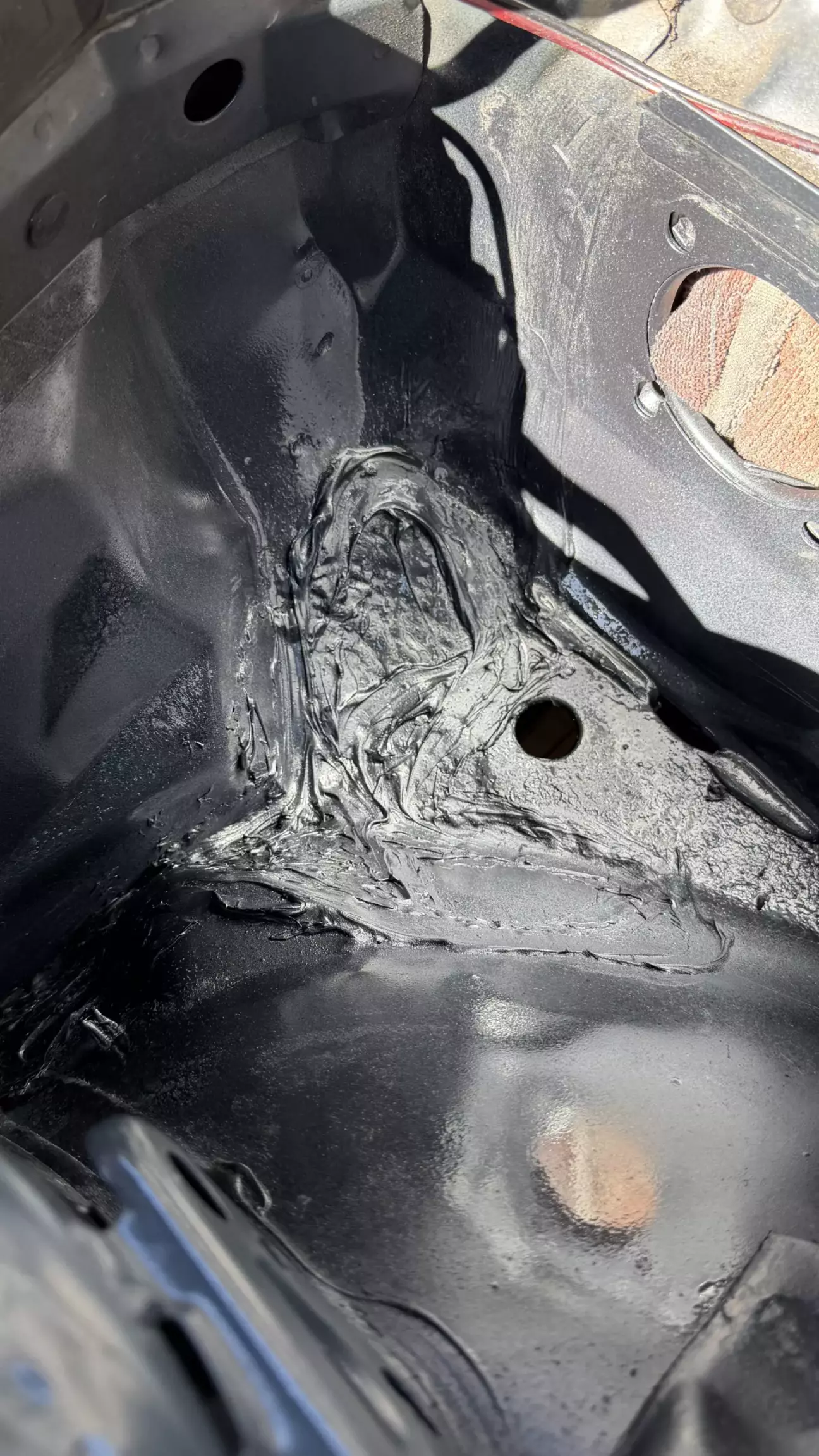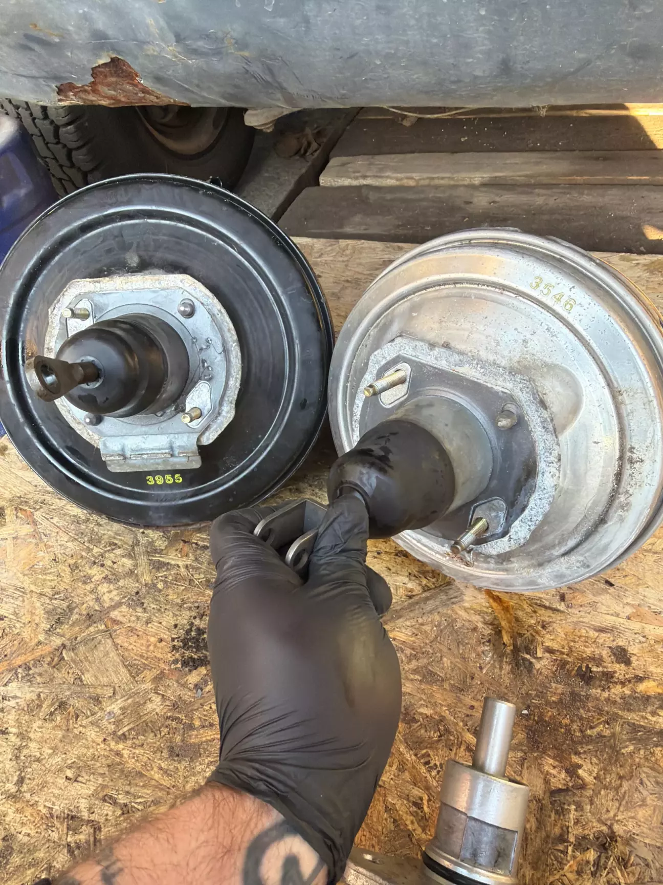 Тормоза стали дубовые, как на заглушенной машине. Есть у 38 болячка с вакумником, со временем, под ним заводская «шуба» накапливает влагу и начинает гнить, и вакумник и место под ним. Услышав шипение, понял, что пришел ему конец. Но решил я делать на совесть и ставить вакумник от Е65. Он намного лучше и не гниет. Вытащил вакумник, открылись мне дополнительные отверстия. Чего быть не должно. Все зачистил, сделал латки, хорошо обварил, зачистил швы, промазал кузовным герметиком, дал сутки высохнуть, загрунтовал, покрыл грунтом, потом краской. А под подкрылком антигравием. Чтобы установить вакумник от Е65: он должен быть от V8. Вот код его (