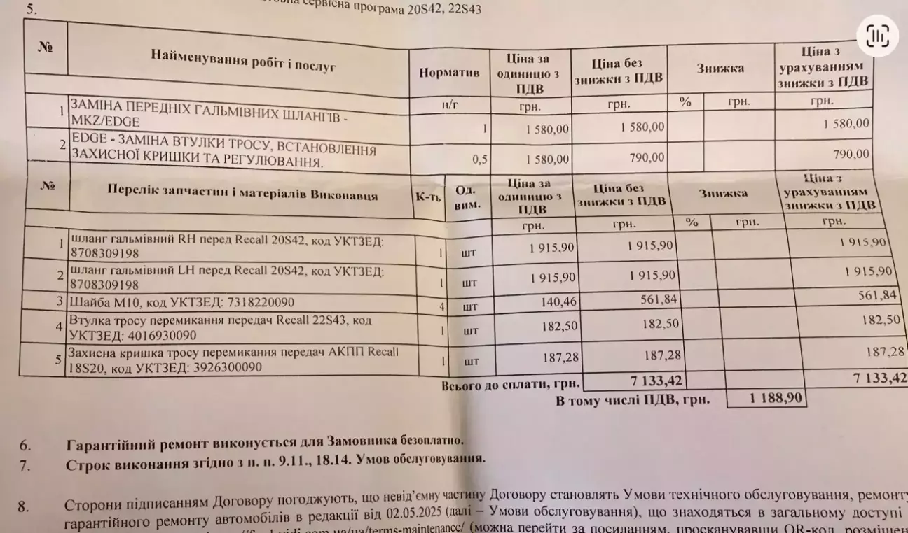 Прочитав що у Ford Edge (2G) була відзивна компанія через передні тормозні шланги, та через втулку троса акпп (перший власник міняв втулку), але на VIDI ще додатково замінили захисну кришку троса. По відчуттях перемикання силектора стало більш збите, в плані без люфта, чітке, одним словом. За шланги не має що писати, нові тай добре ))