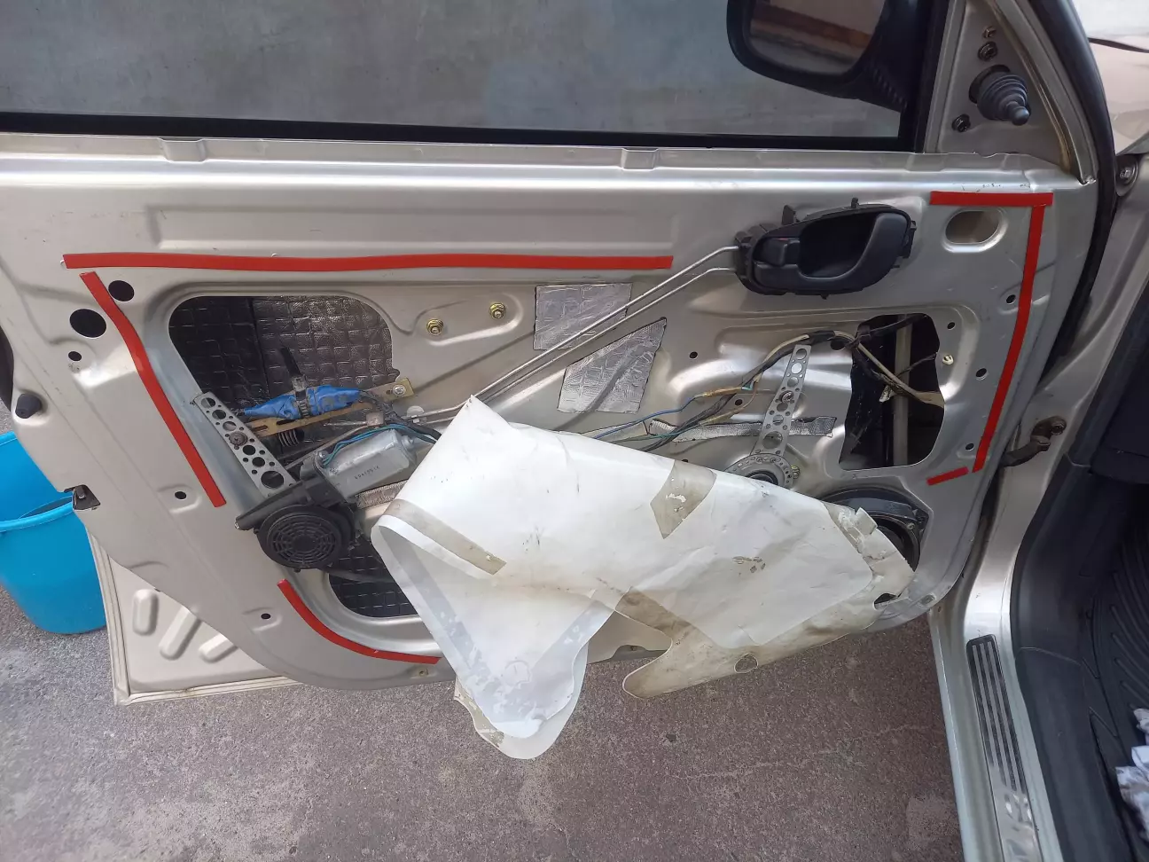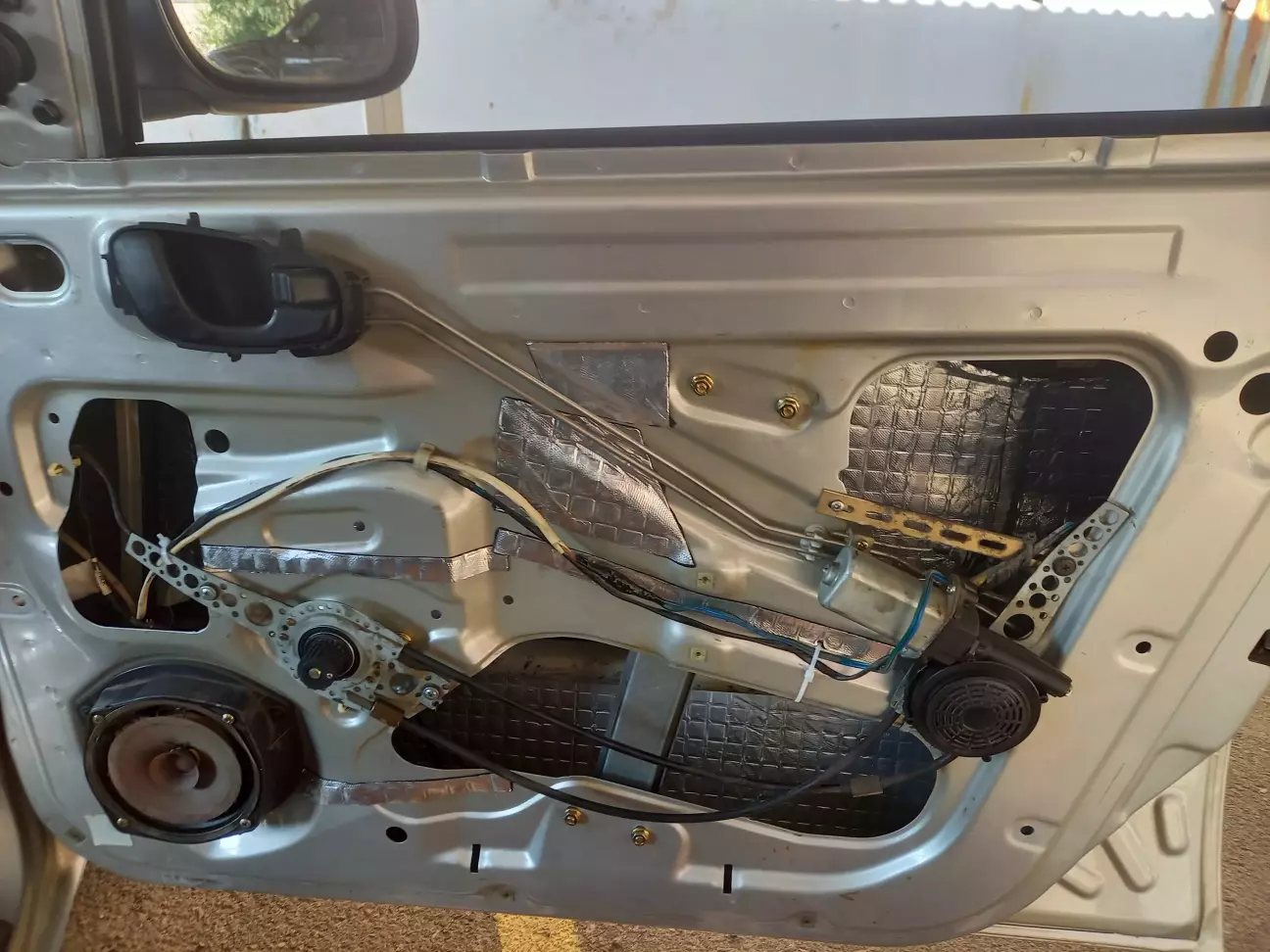 Після того, як заліз у нутрі дверок, коли чистив механізми склопідйомники, вирішив таки зашумити їх.