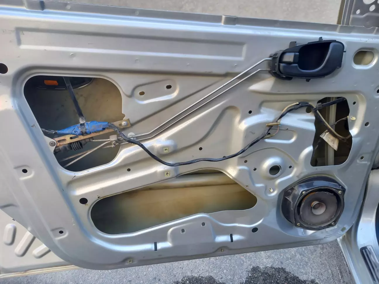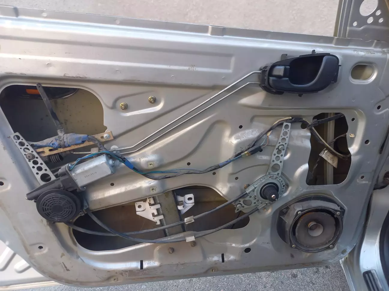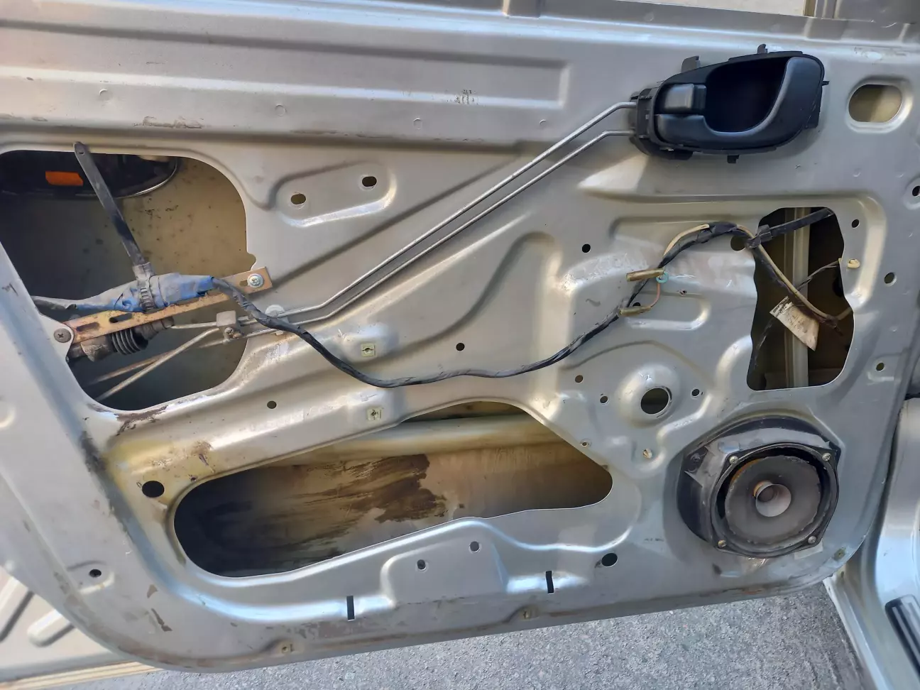 Демонтував механізми склопідйомників, добре вимив двері зсередини від бруду, пилу та землі. Потім добре висушив - благо, погода підсобила.