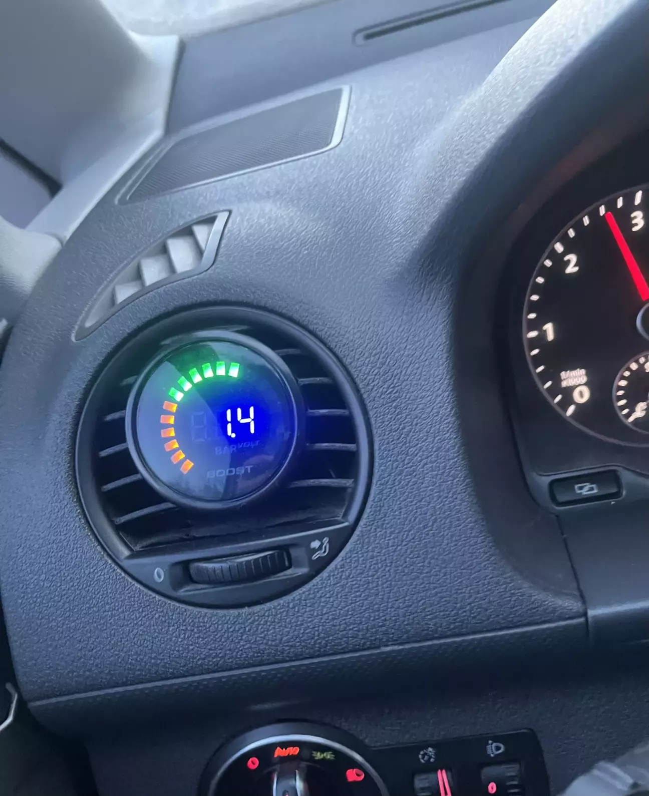 Після вмикання показує Volt мережі, через 30 секунд автоматично перемикається на надув Bar.