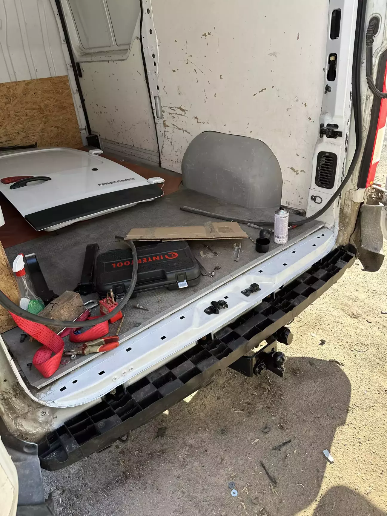 Щось заїздив я свого буса. Косметичний вигляд «такий собі». Так ще й зимою трапилось не величке ДТП. Здавав заднім ходом з сильно засніженої території, набрав маху щоб не застрягнути і не помітив стовба. Бабах був такий що я офігів. Як наслідок - погнуті і пробиті двері, розбитий бампер і підсилювач, трішки підігнуло кузов.