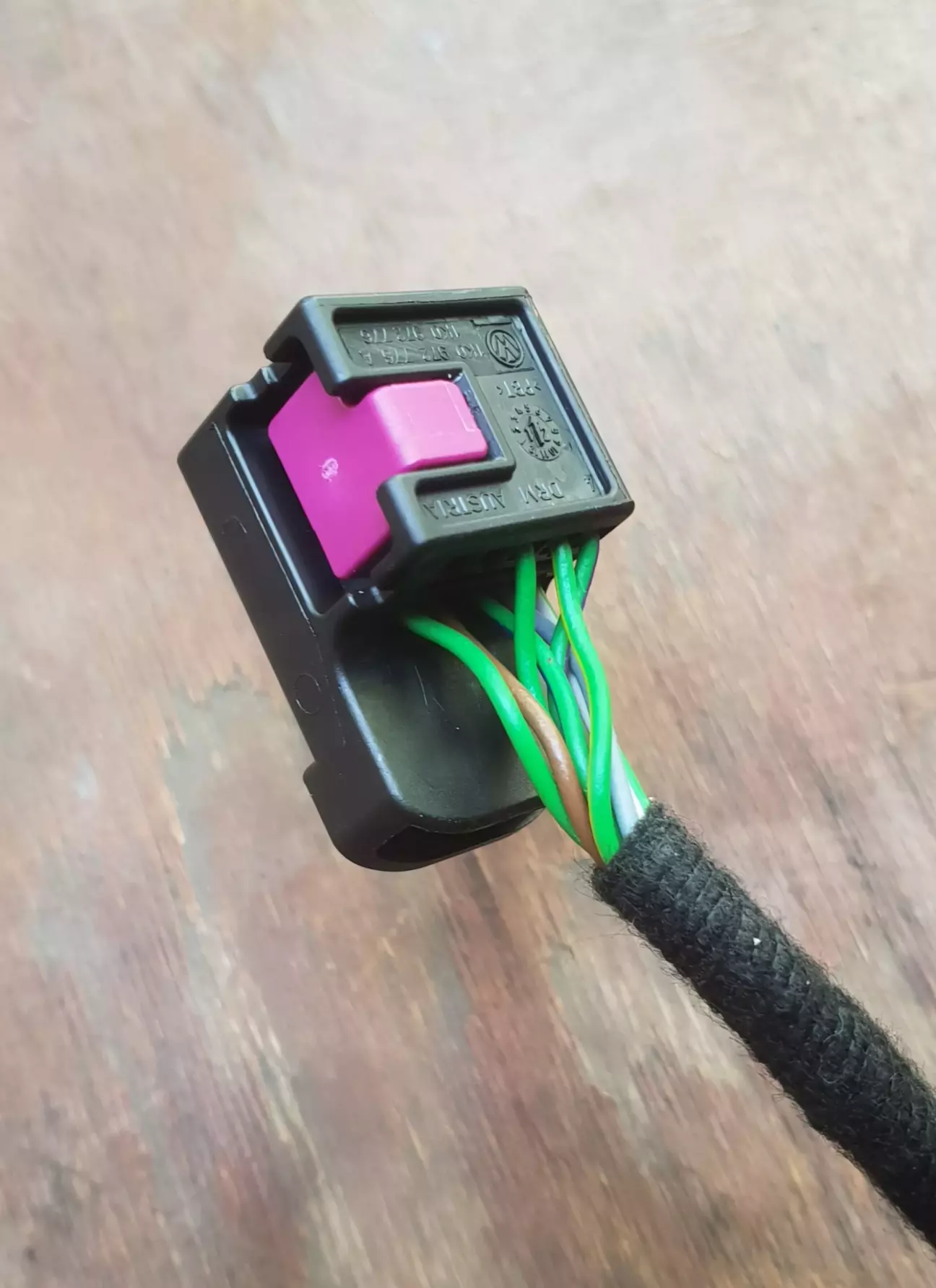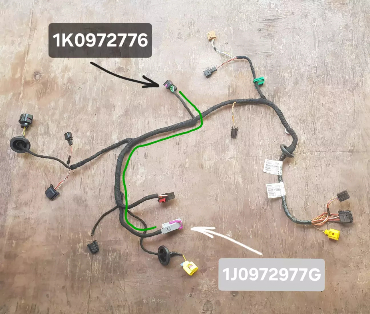Провід ЗЕЛЕНИЙ/синя смужка йде в Дверний Блок 5K0959793A, сірий роз'єм 1J0972977G