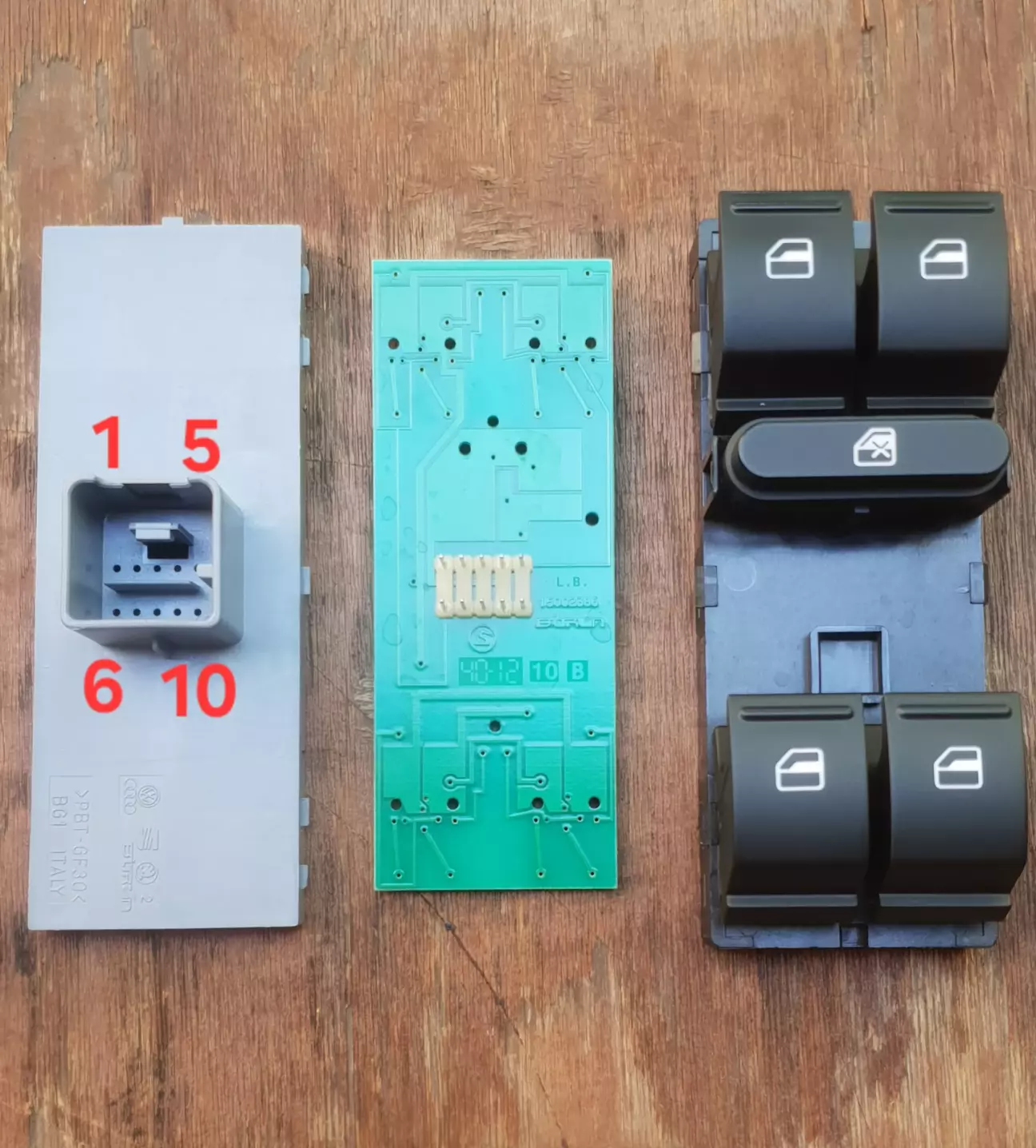 Поз. 5 - лінія від кнопки управління водійським ЕСП. При натисканні/піднятті цієї кнопки маса йде в Дверний Блок, все в той же сірий роз'єм 1J0972977G.
