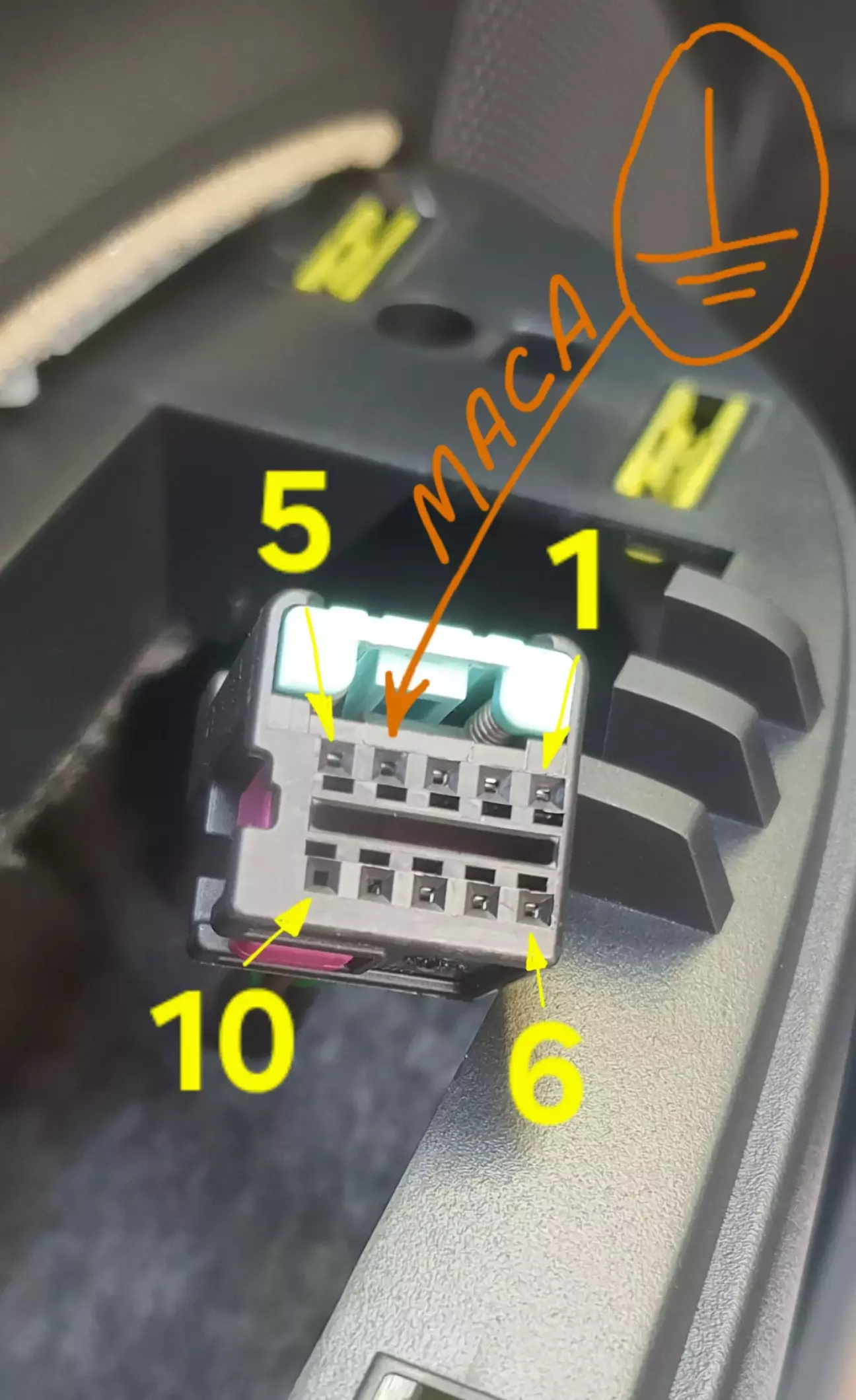 Провід КОРИЧНЕВИЙ з'єднується з іншими проводами маси в джгуті проводів дверей водія за внутрішньою ручкою👇
